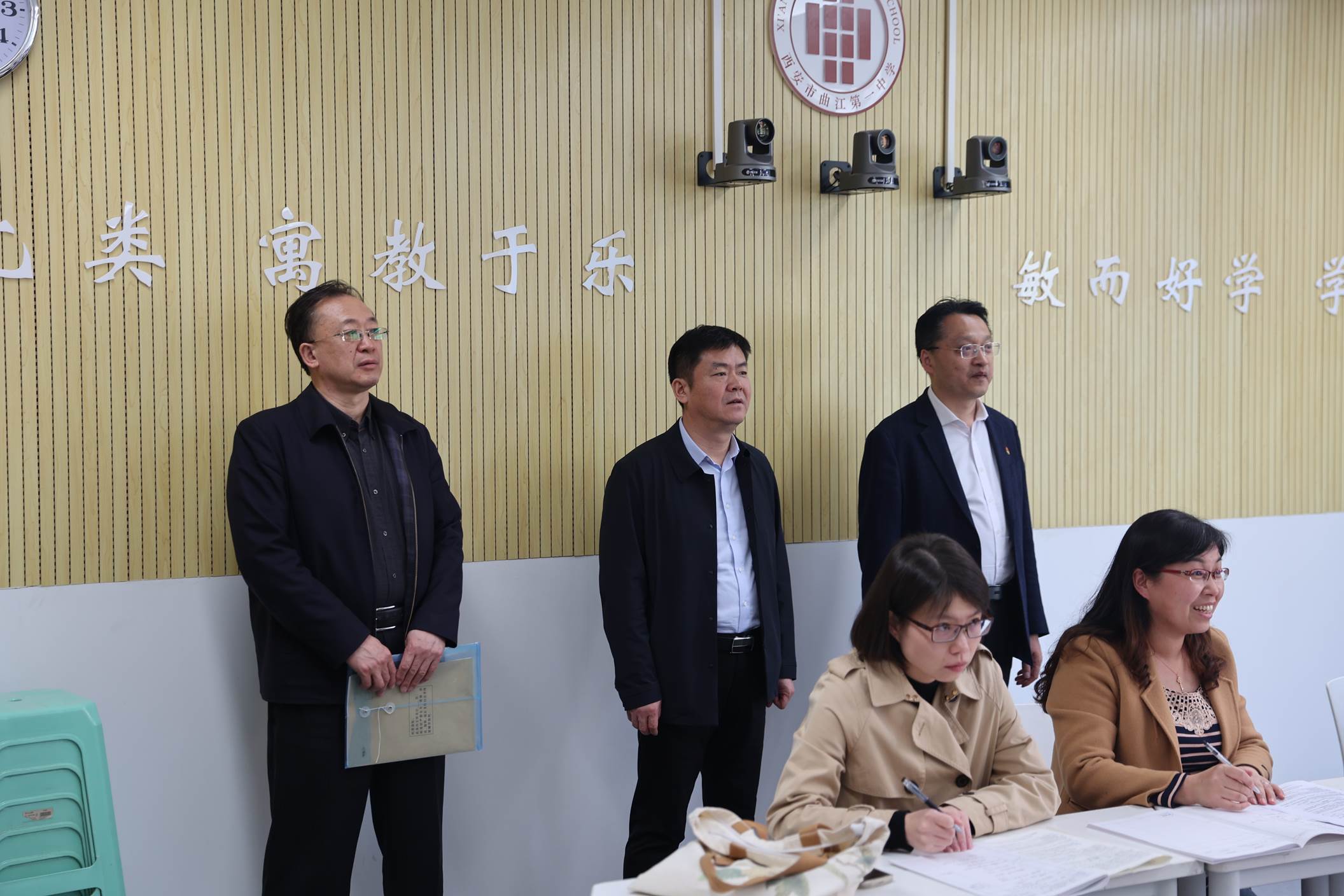 过主任一行观看了正在曲江一中体育馆进行的西安市青少年排球邀请赛暨西安市青少年排球公开赛,观摩了录课教室的现场课堂教学,参观了学校考古教室、校展室和学生发展指导中心。