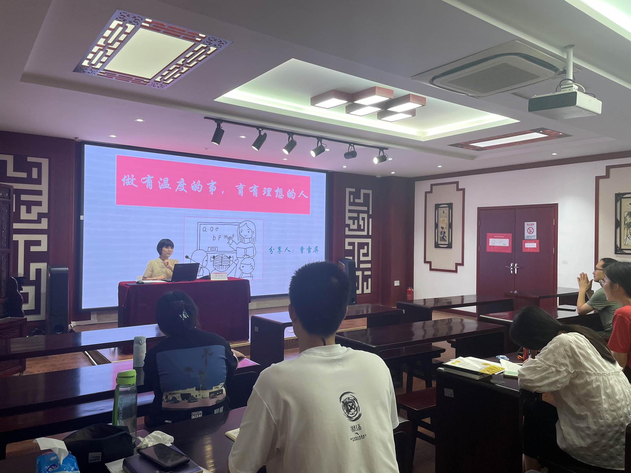 曾雪屏老师的专题分享为《做有温度的事,育有理想的人》,曾雪屏老师谈到,每个孩子都是一棵会开花的树,班主任是树干,连接根枝,源源不断为枝叶供给养分,同时对树的发展走向加以匡正,让这棵青春之苗长成参天大树。她希望青年教师能参透班主任工作的玄机,在往后的教学生涯中,一路繁花相伴!