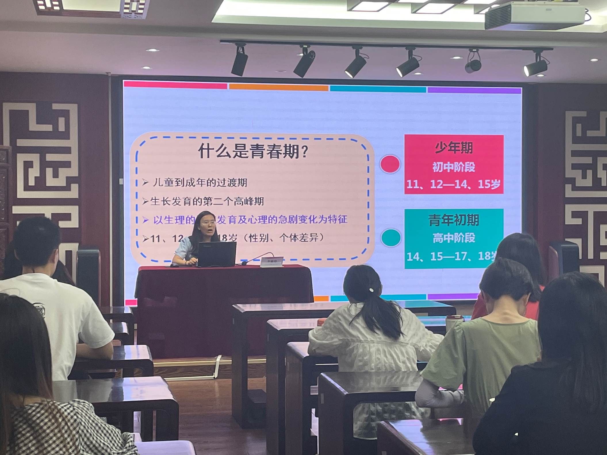 学生发展指导中心李嫩晓老师以《学生管理中的心理学智慧》为题,从了解青春期学生、管理与沟通的艺术及教师自我调整与提升三个方面进行分享,帮助各位教师更好地了解学生,运用恰当的师生管理与沟通技巧,促进学生良好适应与健康发展。同时,也希望各位教师主动调整和提升自我,成为积极乐观、开拓创新、富有教育智慧的好教师。