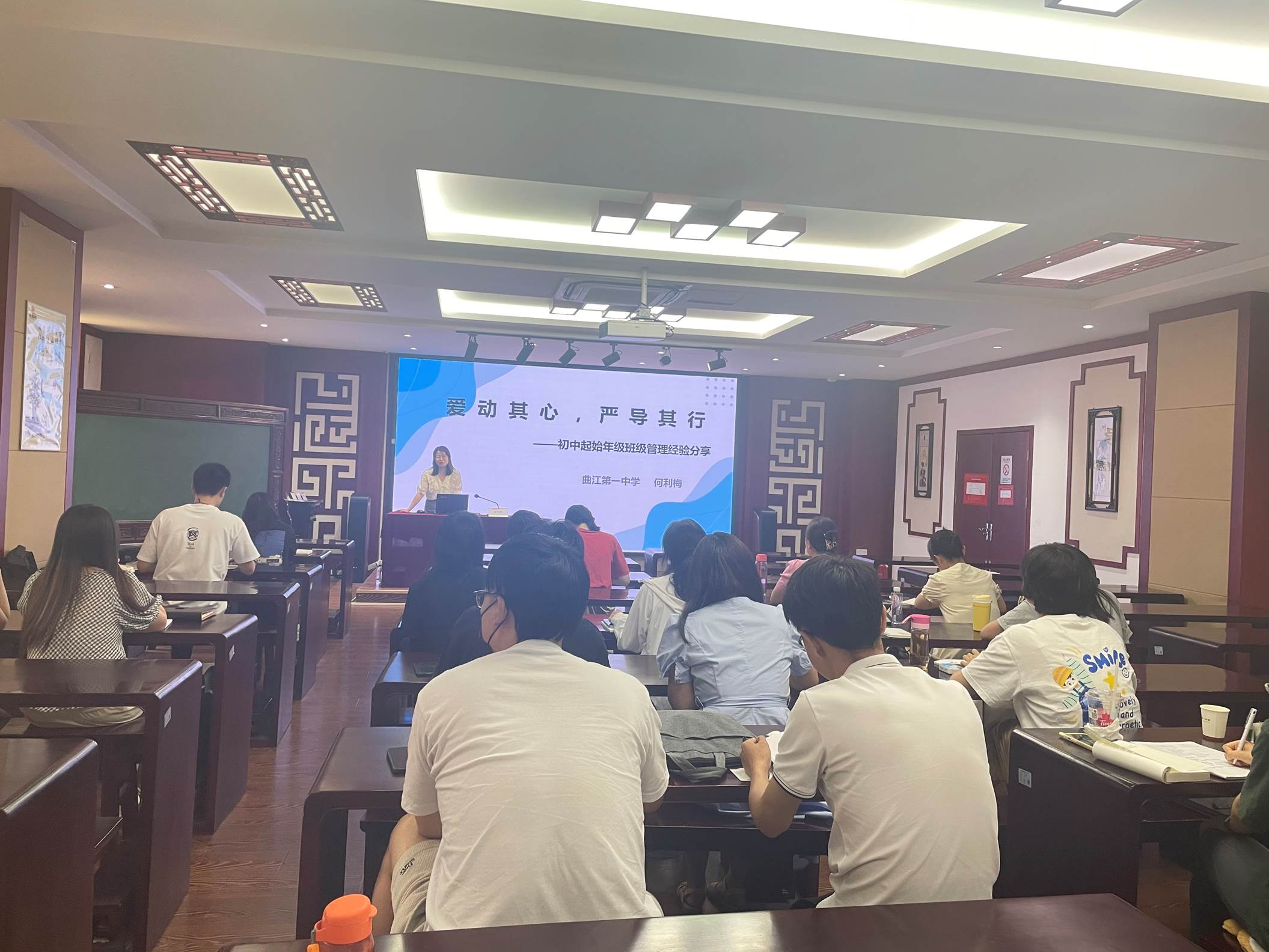 当天下午,政教处副主任董锋主持进行德育工作培训,邀请我校学生发展指导中心教师李嫩晓、初2020级年级组长何利梅、初2020级优秀班主任马博长、李瑜、曾雪屏分别分享带班心得。