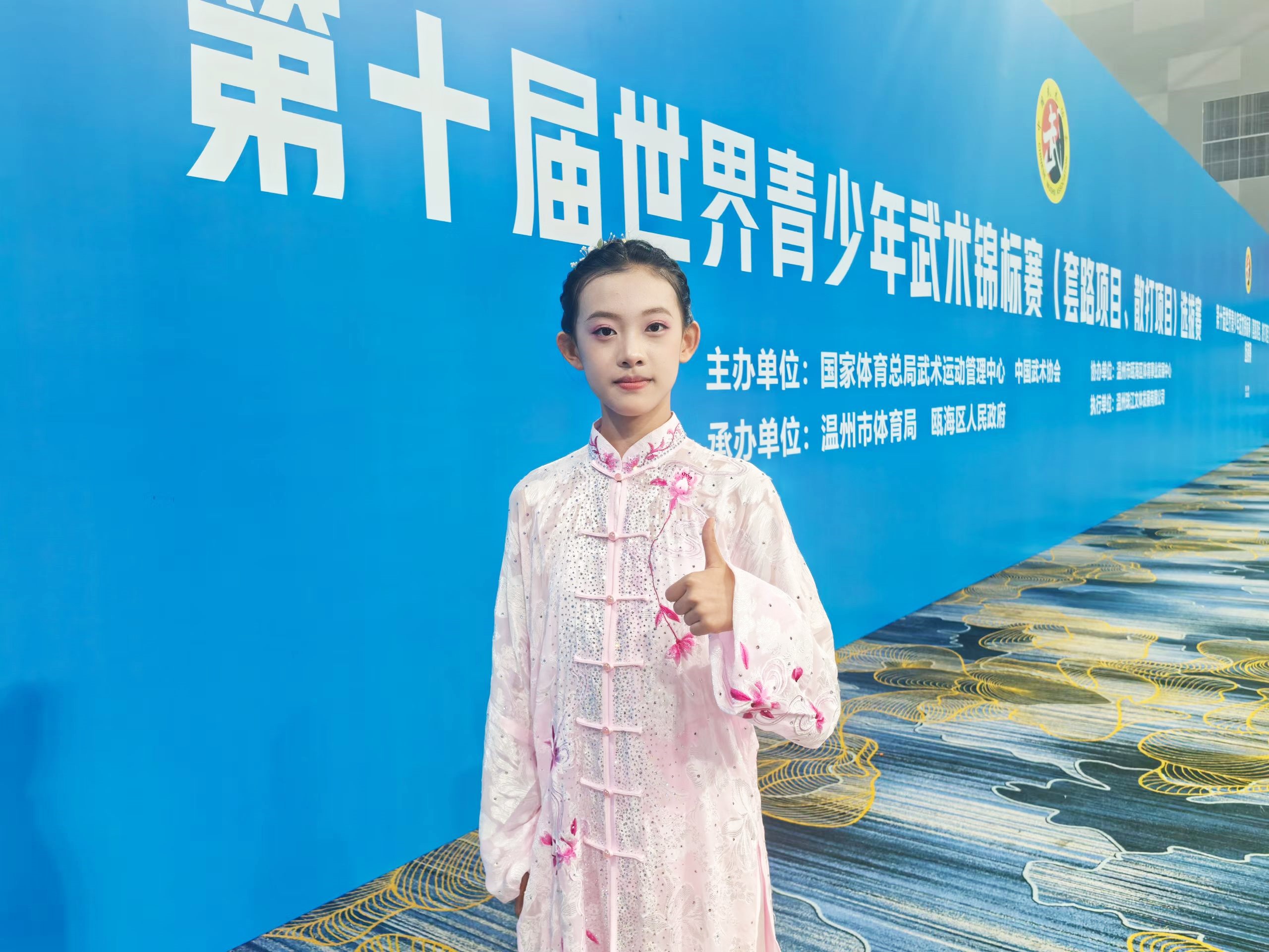12月17日,第十届世界青少年武术套路锦标赛选拔赛在温州瓯海奥体中心体育馆举行,共有来自全国25个省市的38支代表队、522名选手参赛。西安市曲江第一中学初2024级学生韩泞羽代表陕西队出战,勇夺女子B组42式太极拳项目冠军,42式太极剑项目亚军。