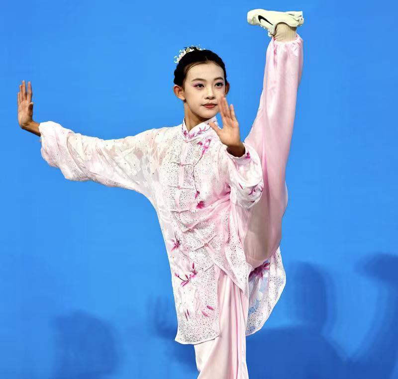 赛场上,韩泞羽沉稳自信,充分展现了扎实的技艺与良好的竞技风貌。在42式太极拳项目中,她神情专注从容,动作舒展流畅、刚柔并济,形神兼备地诠释了该套路融合多流派经典的技术特点,同时融入青少年独有的灵动气韵,最终以优异成绩夺得冠军。在随后的42式太极剑项目中,她手持长剑辗转腾挪,剑法清晰、攻防有度,21种剑法与腿法、发力动作衔接自然,凭借稳定发挥再获亚军,出色的表现赢得裁判与观众的一致好评。