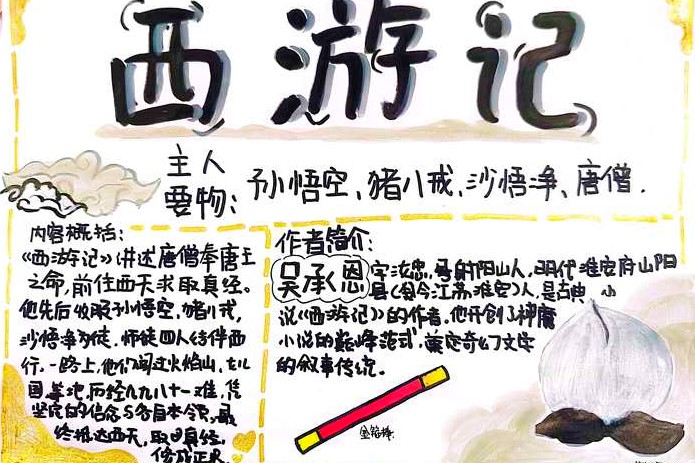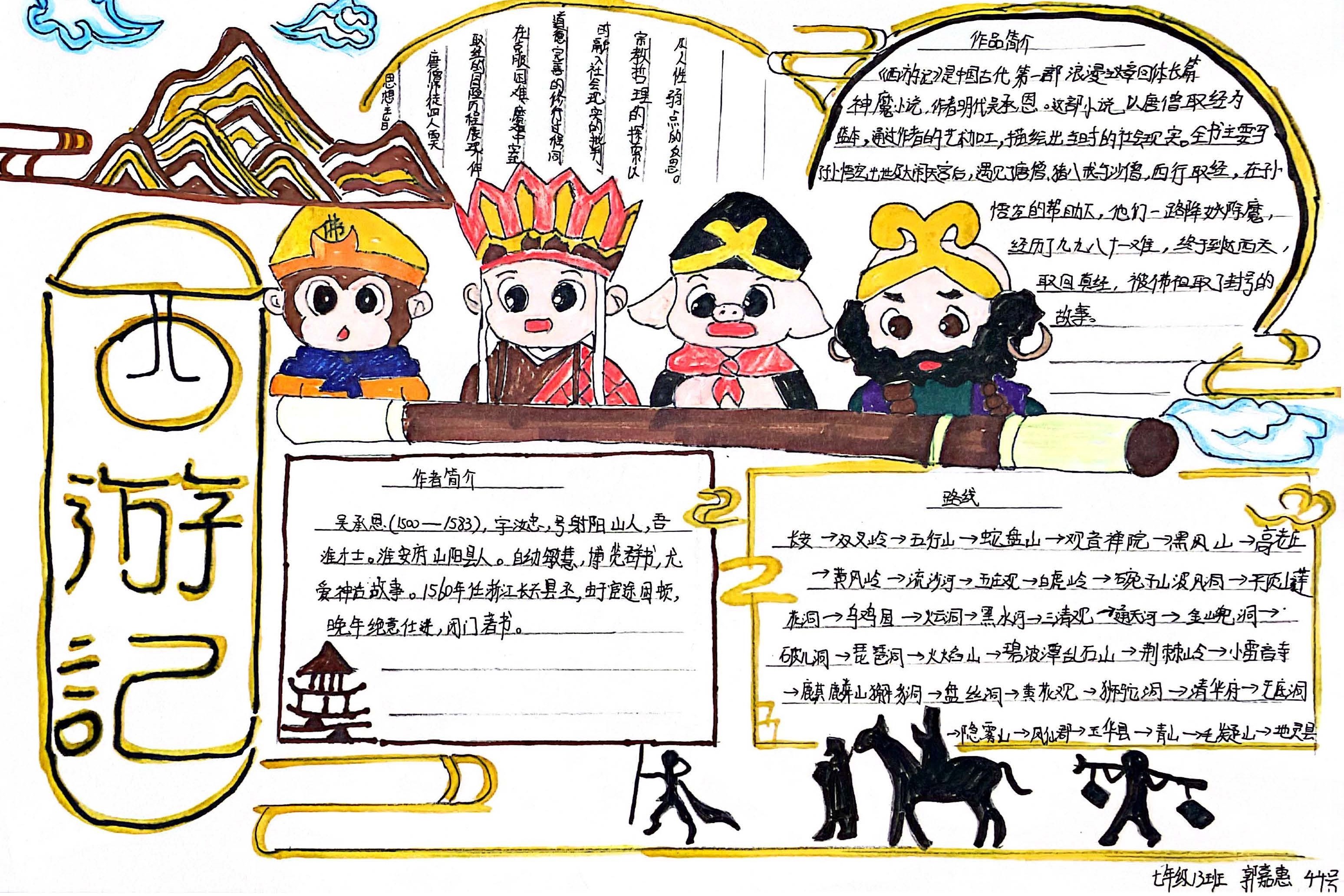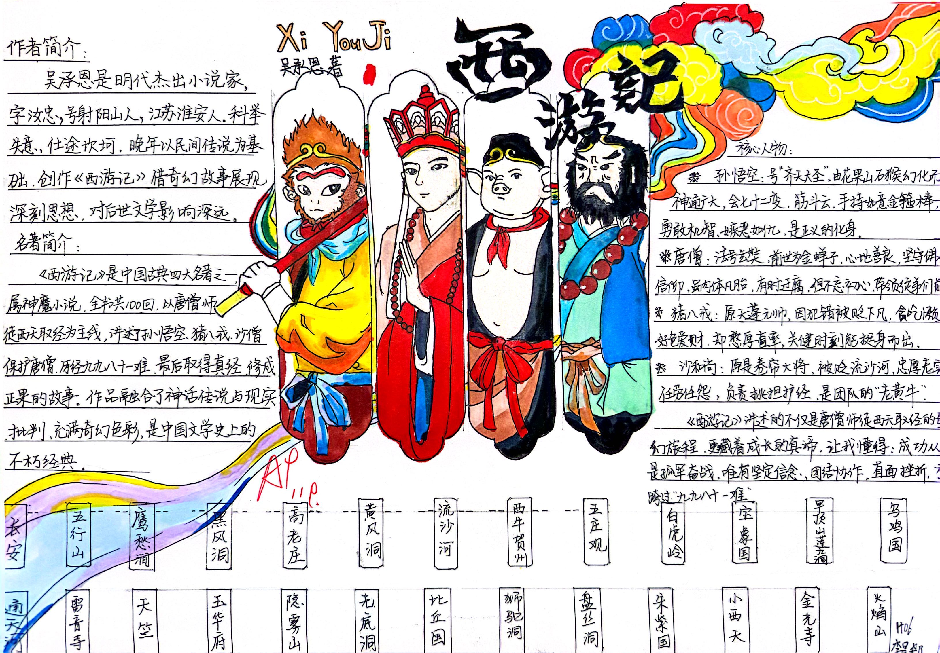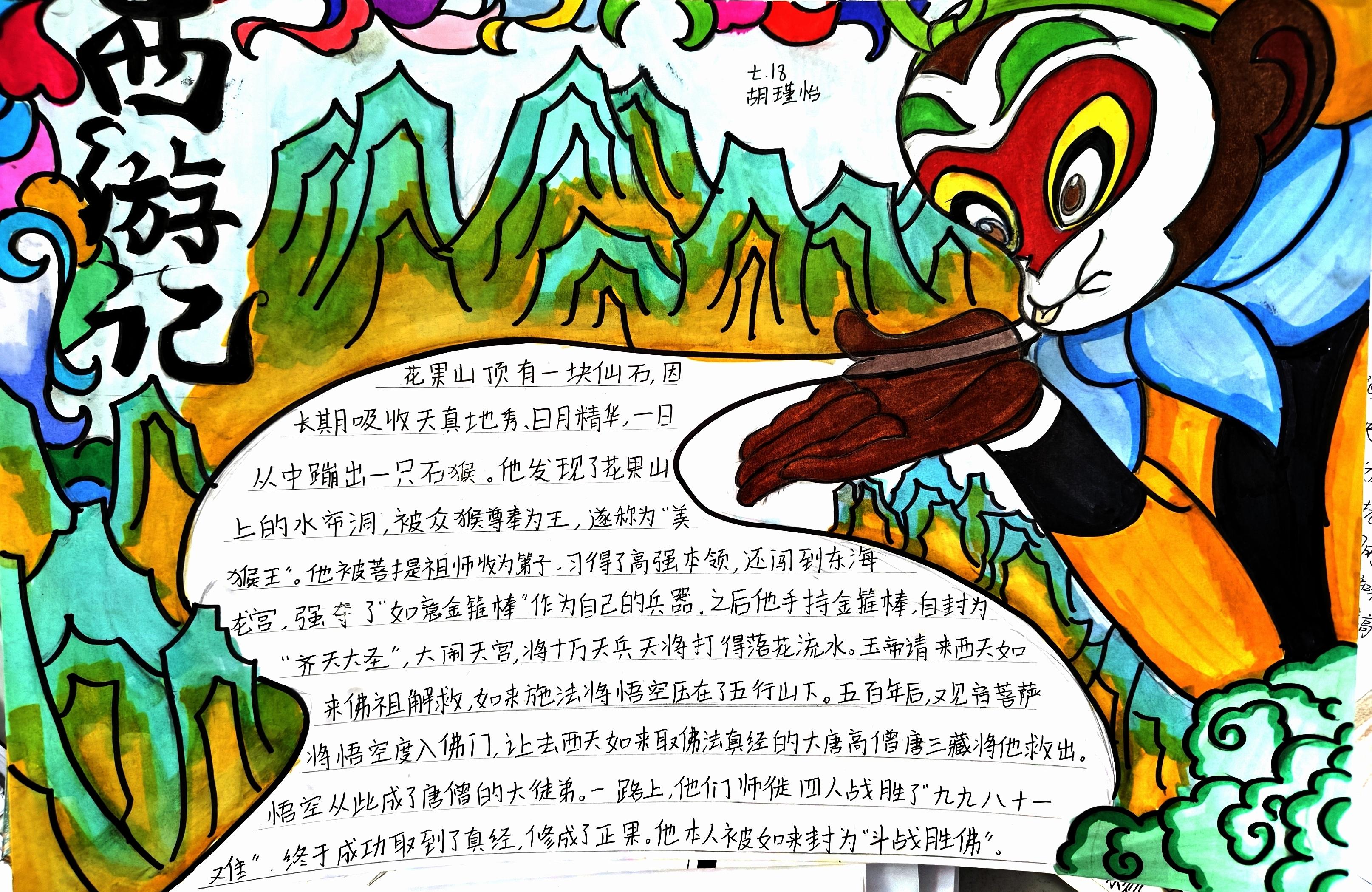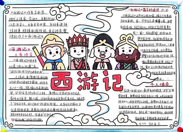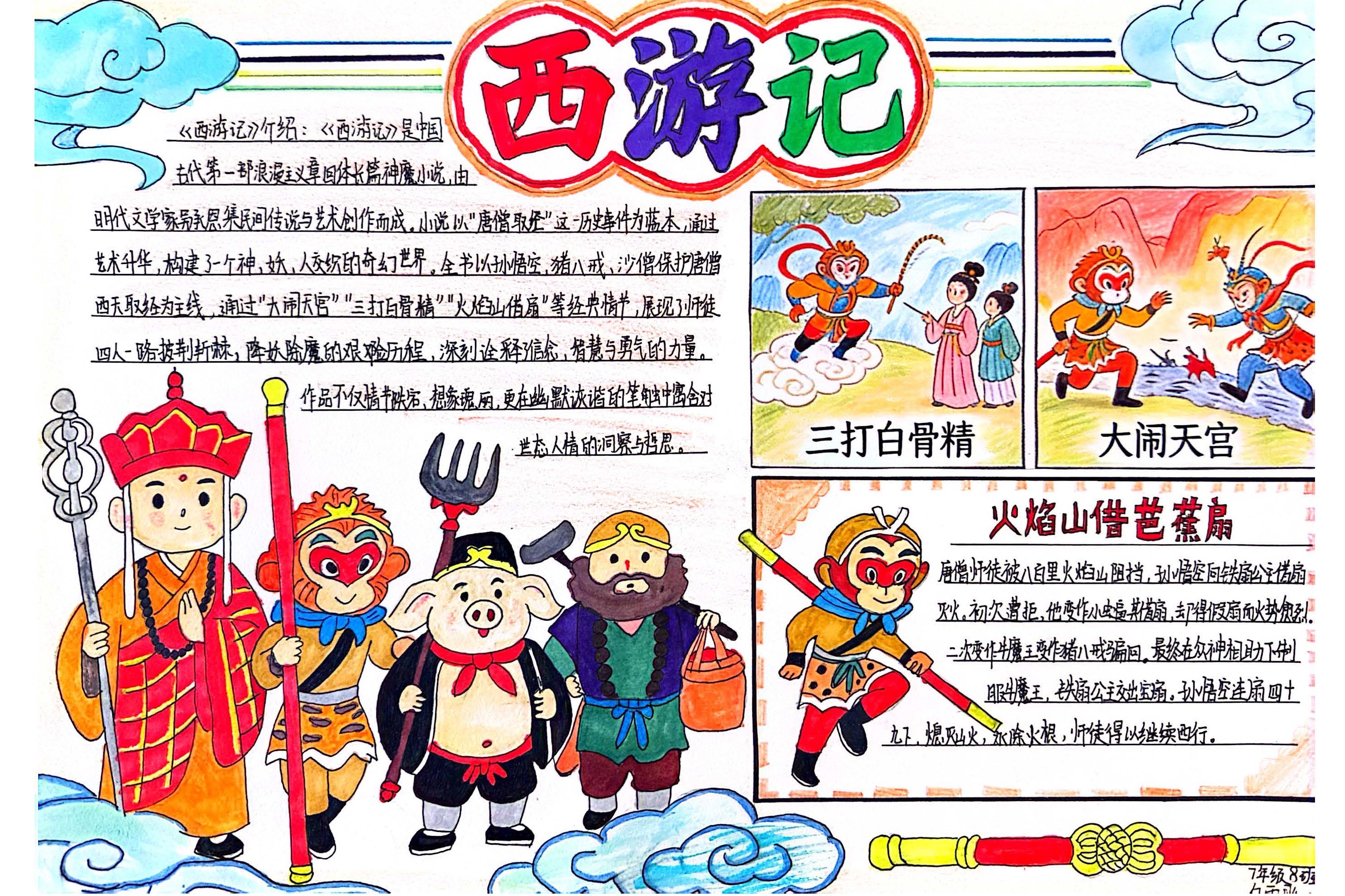 一张张手抄报构思精巧,创意盎然。有的聚焦“三打白骨精”“大闹天宫”“智取红孩儿”等经典情节,人物形象鲜明,场景刻画细腻,仿佛将读者带入那个奇幻诡谲的神魔世界;有的围绕师徒四人的性格特质展开解读——从唐僧的坚定执着、孙悟空的智勇双全,到猪八戒的憨态可掬、沙和尚的忠厚沉稳,字里行间流淌着同学们对角色的个性化理解;还有的另辟蹊径,以“取经精神”为核心,将不畏艰险、团结协作的品质与当下的学习成长相联系,赋予经典全新的时代意义。