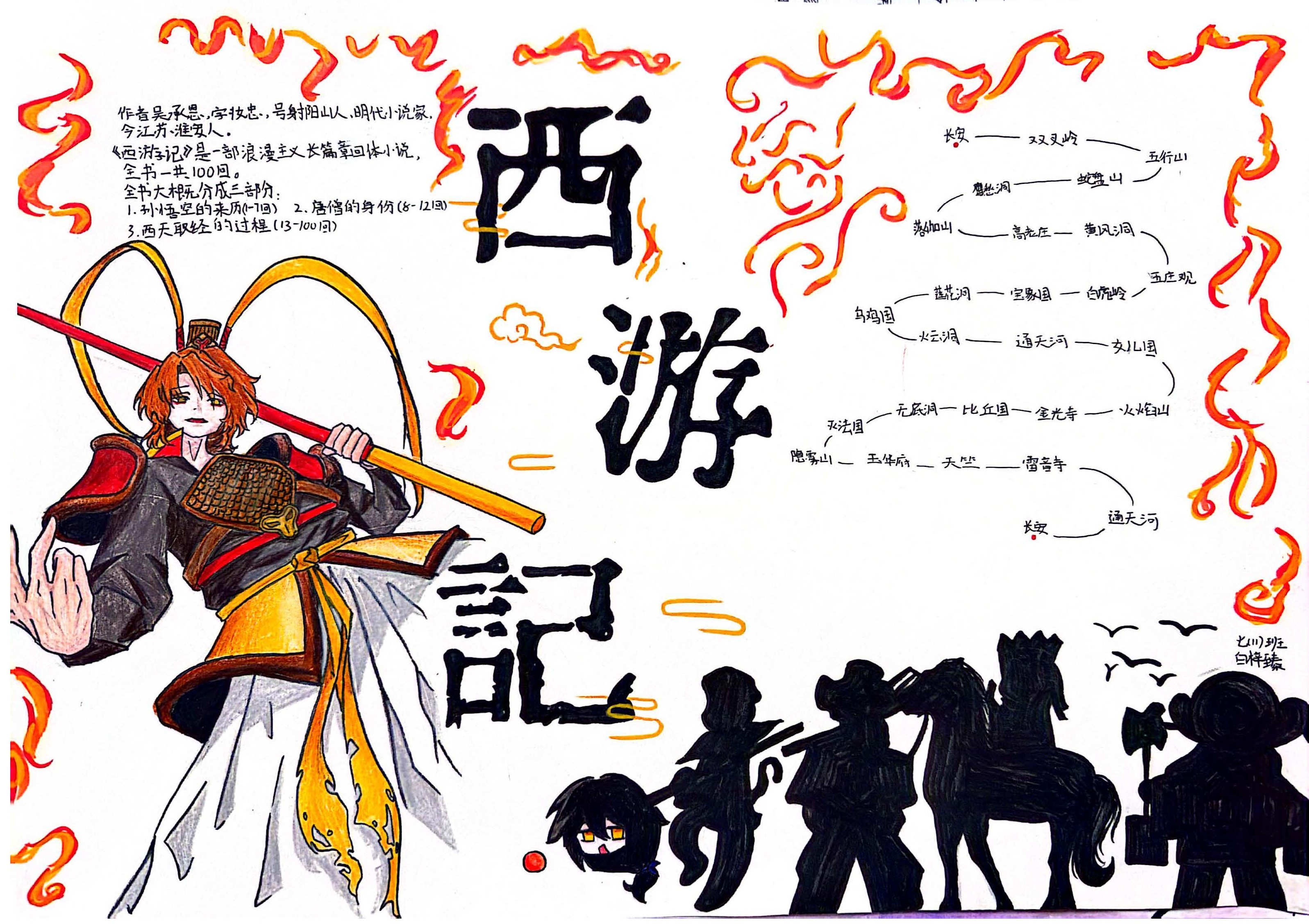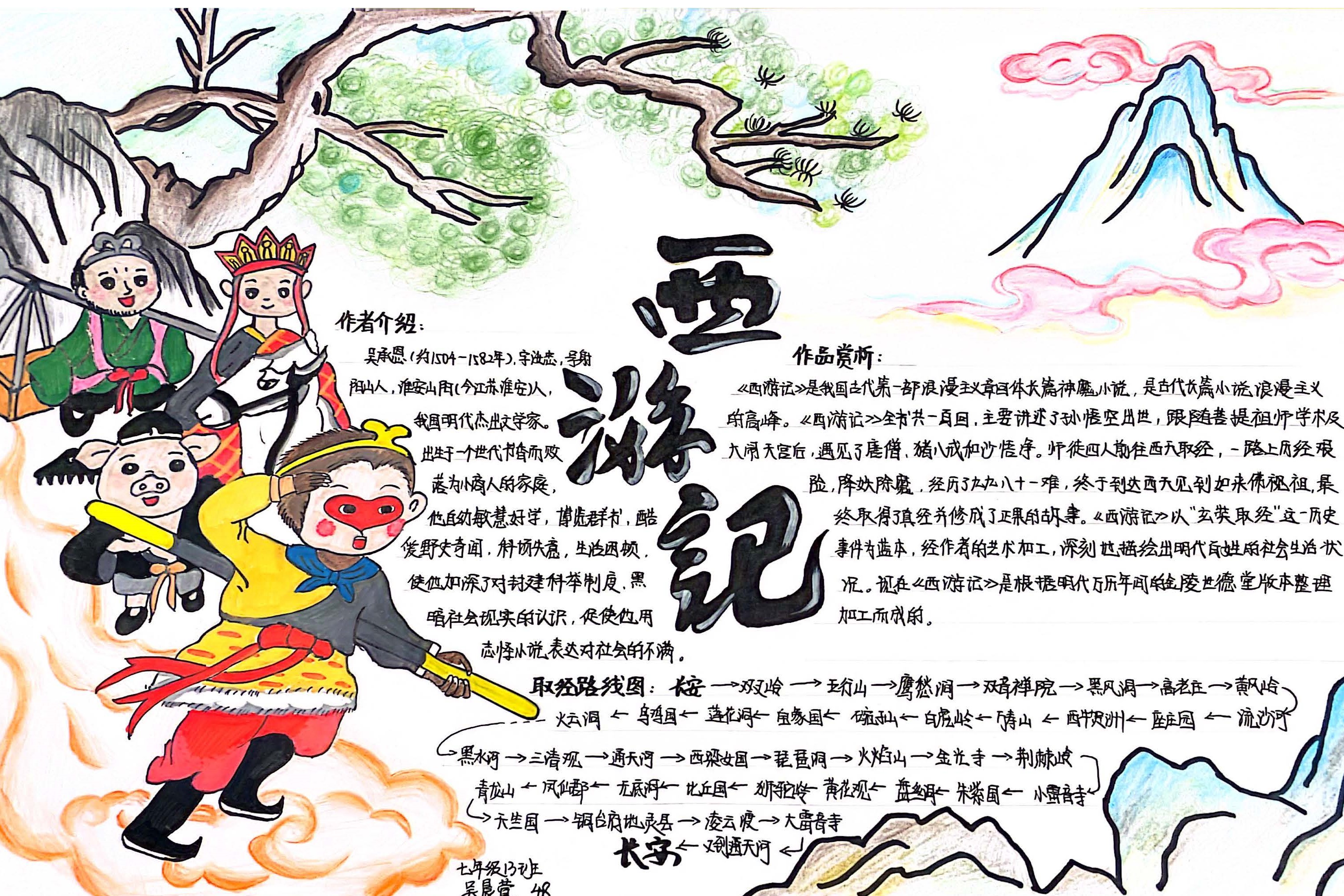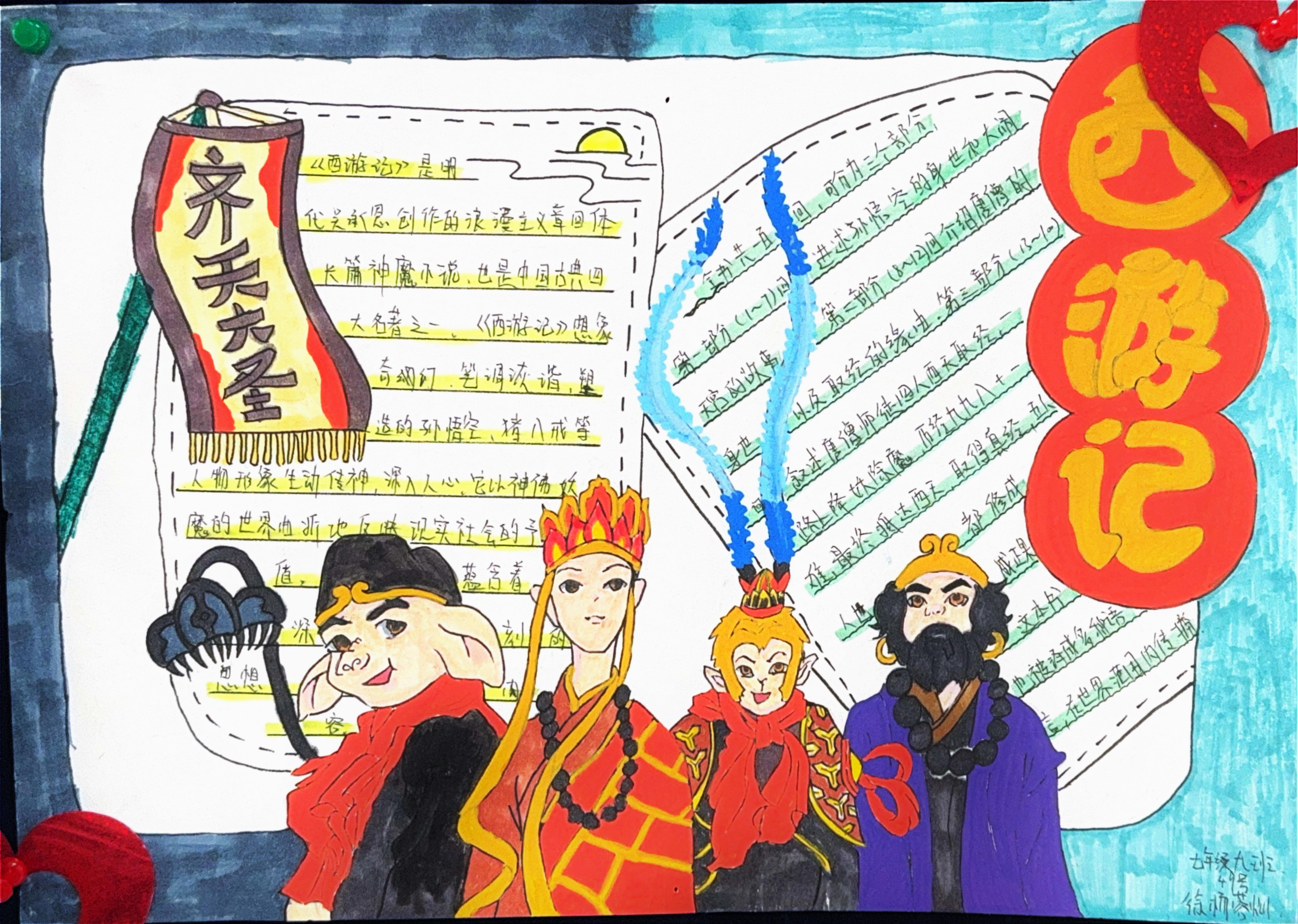 在本次活动中,同学们沉浸于原著章节,细细品读师徒四人西行路上的坎坷与坚守;查阅资料典籍,深入挖掘神话背后的文化内涵;精心构思版面,将奇思妙想融入线条与色彩之中,展现出灵动的审美力与鲜活的创造力。