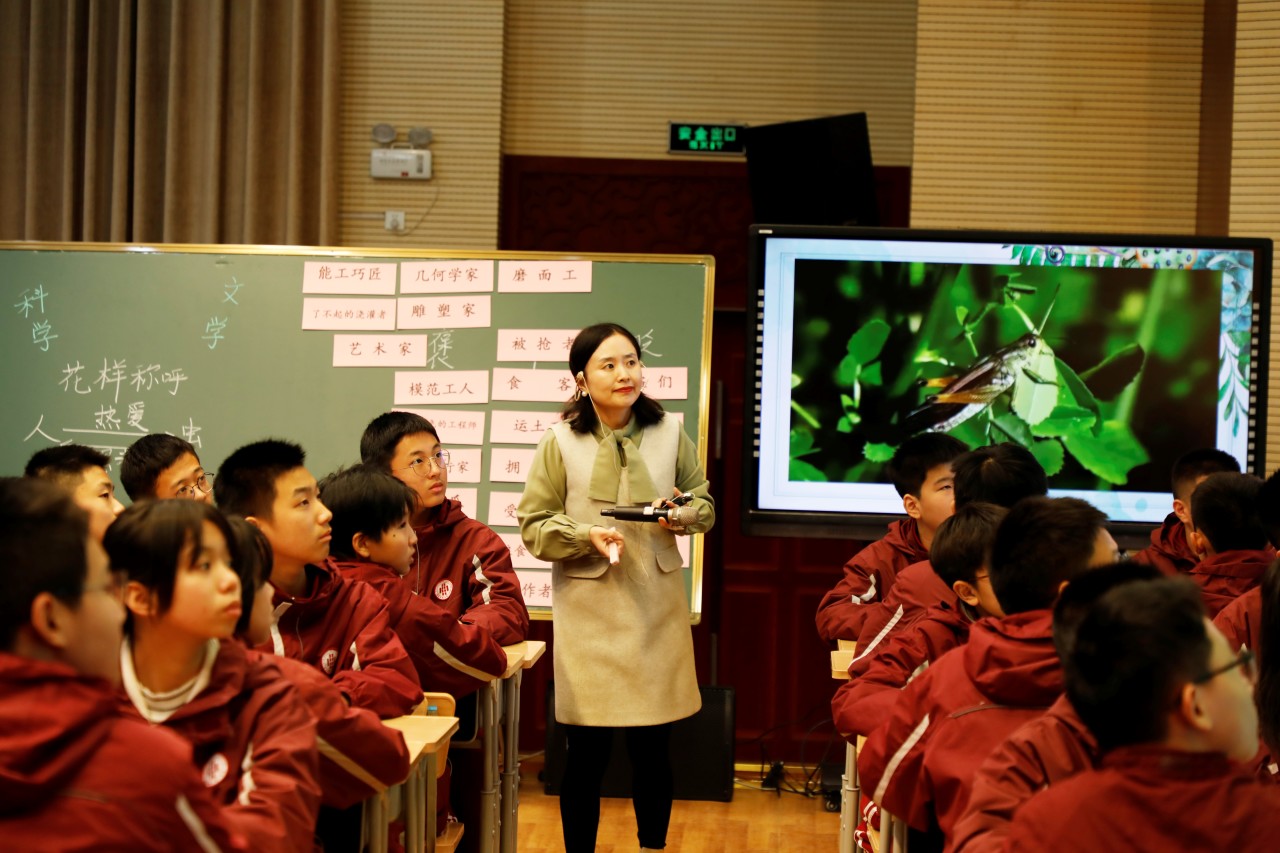 西安市曲江第一中学教师郭晓敏从“花样称呼,异中寻同”“辨析称呼的感情色彩”以及“不同的昆虫,相同的称呼”三个部分展开。郭老师采用小组探讨、情境朗读、文本细读、写作实践等教学方式,引导学生理解法布尔“以人性写虫性,用虫性观人性”的写作目的。作为一节导读课,郭老师的设计帮助同学们开阔思维,感悟文学之美。