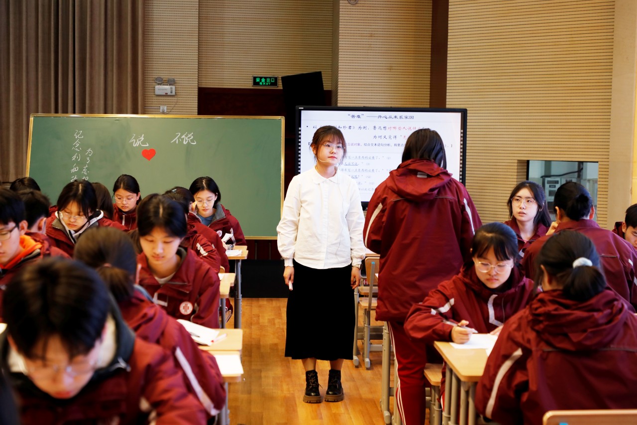 西安市曲江第一中学教师孙仟以“伟大也要有人懂——《呐喊》出版100周年”这一真实情境,开启了《记念刘和珍君》《为了忘却的记念》两篇文本的品味之旅。孙老师抓住文本的矛盾点“说”与“不说”,让学生以课文为例,选取言说对象,品味言说语言及深沉情感。随后,孙老师以“忘却”和“记念”的矛盾,引领学生探讨文章的写作目的以及鲁迅先生的理性与深刻。最后,课堂在学生深情地朗读纪念鲁迅的小诗中结束。课堂层层推进,理性与感性交融。