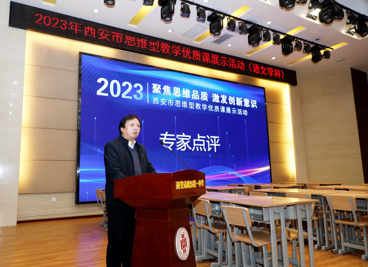 11月28日,西安市思维型教学优质课展示活动(语文学科)在西安市曲江第一中学举行。本次活动特邀陕西师范大学教授、陕西师范大学教师专业能力发展中心专家严文法,特级教师、正高级教师、陕西省教学名师程雪慧担任点评专家,西安市思维型教学研究中心核心研究员、曲江一中教务主任李慧,语文教研组组长陈思嘉,副组长武媛莹担任评委。来自西安市曲江第一中学、陕西师范大学平凉实验中学、海南省昌江中学、西安高新第一中学的7位语文教师为我们带来了异彩纷呈的思维型课堂。