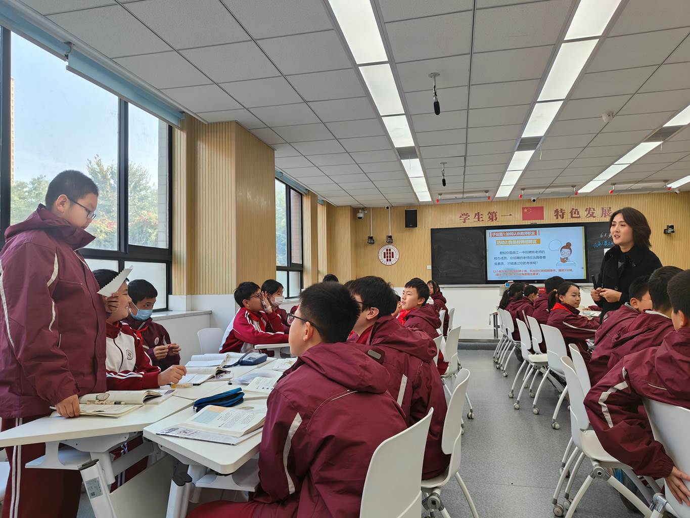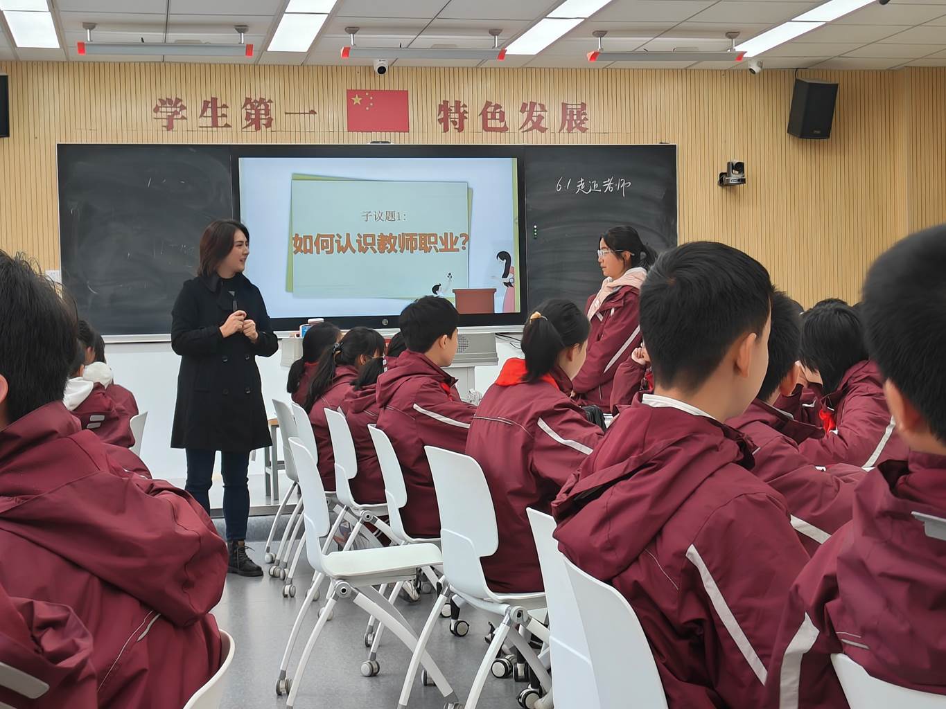李莹老师以“如何认识老师?”为议题,设计“我是教师招聘官”“教师模仿秀”“随机采访”等活动环节,通过创设情境,让学生在活动中模拟角色、主动参与。课程把握思想教育的基本特征,实现说理教育与启发引导的有机结合,在探究与展示的过程中帮助学生形成对教师职业的正确认识,为引导学生建立良好的师生关系打下基础,培养学生良好人际交往的能力。