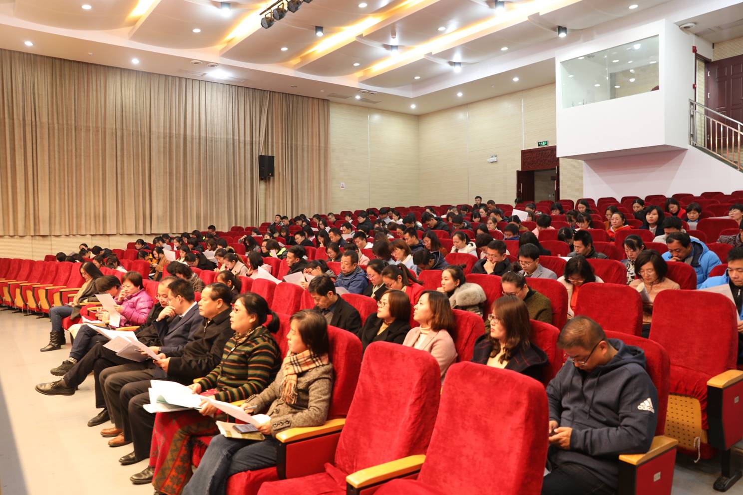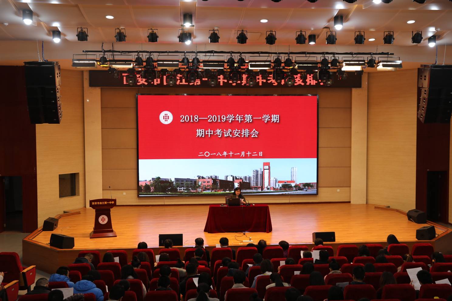 11月12日下午,全校教职工大会在润德厅如期召开。会上,教务处副主任高秋棉就本学期重要的教学评价工作期中考试做了严格详细的安排;常务副校长陈勇刚为全校教师做了《思维型教学理论在教学实践中的应用》的专题讲座。