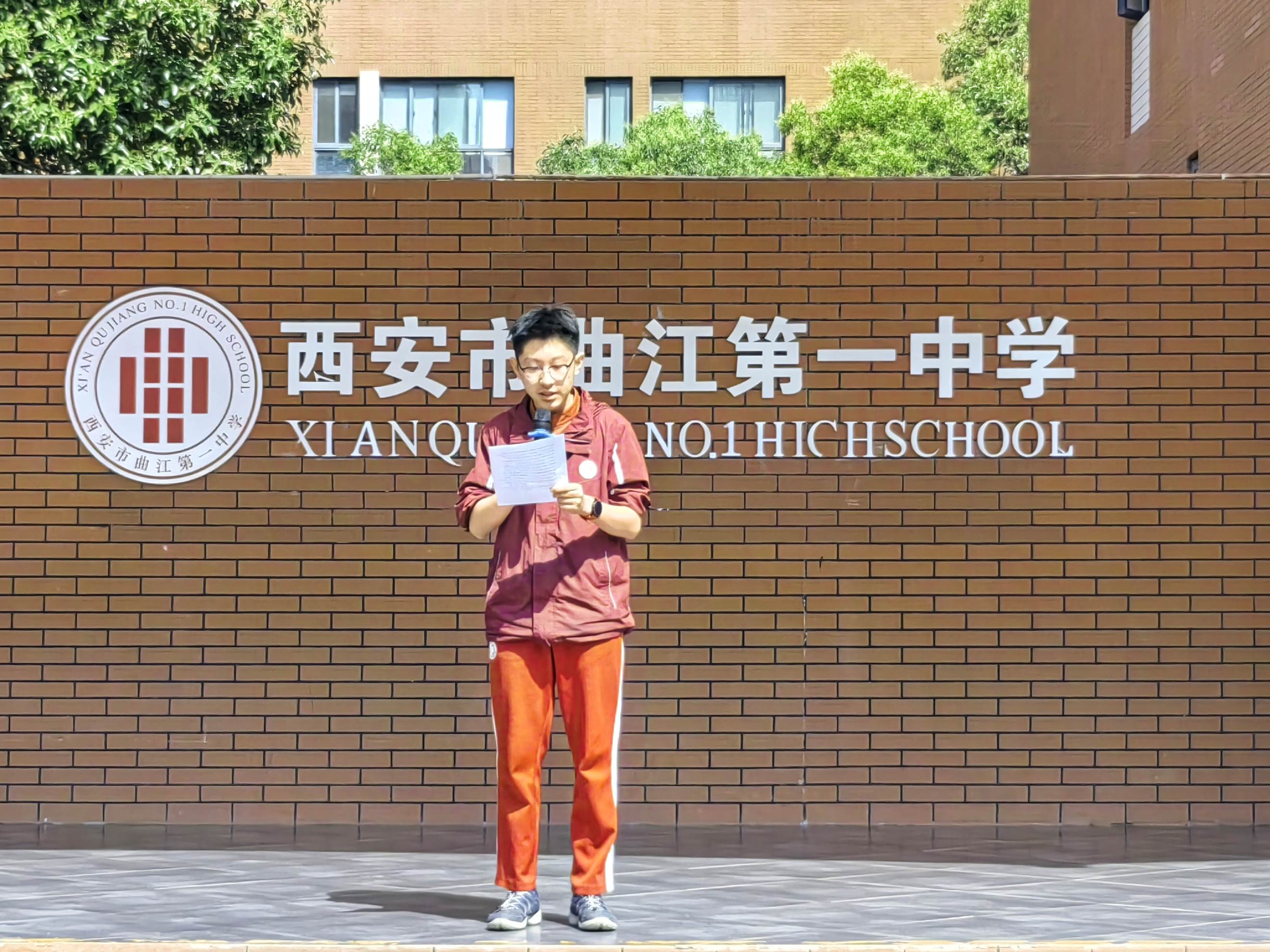 2023年5月15日上午,西安市曲江第一中学举行了本学期第十五周升旗仪式,仪式在东、西区操场同时举行,分别由政教处副主任丁慧芸、董锋主持。