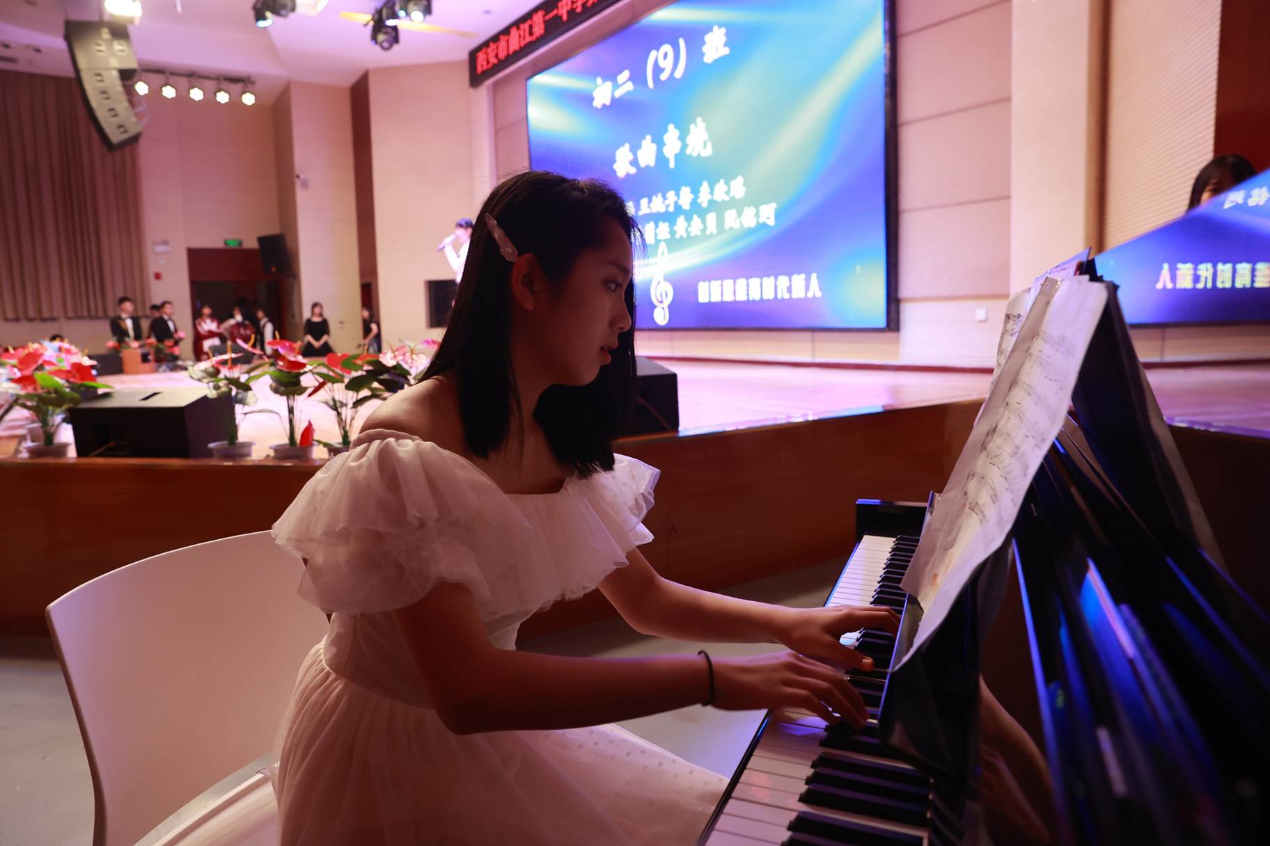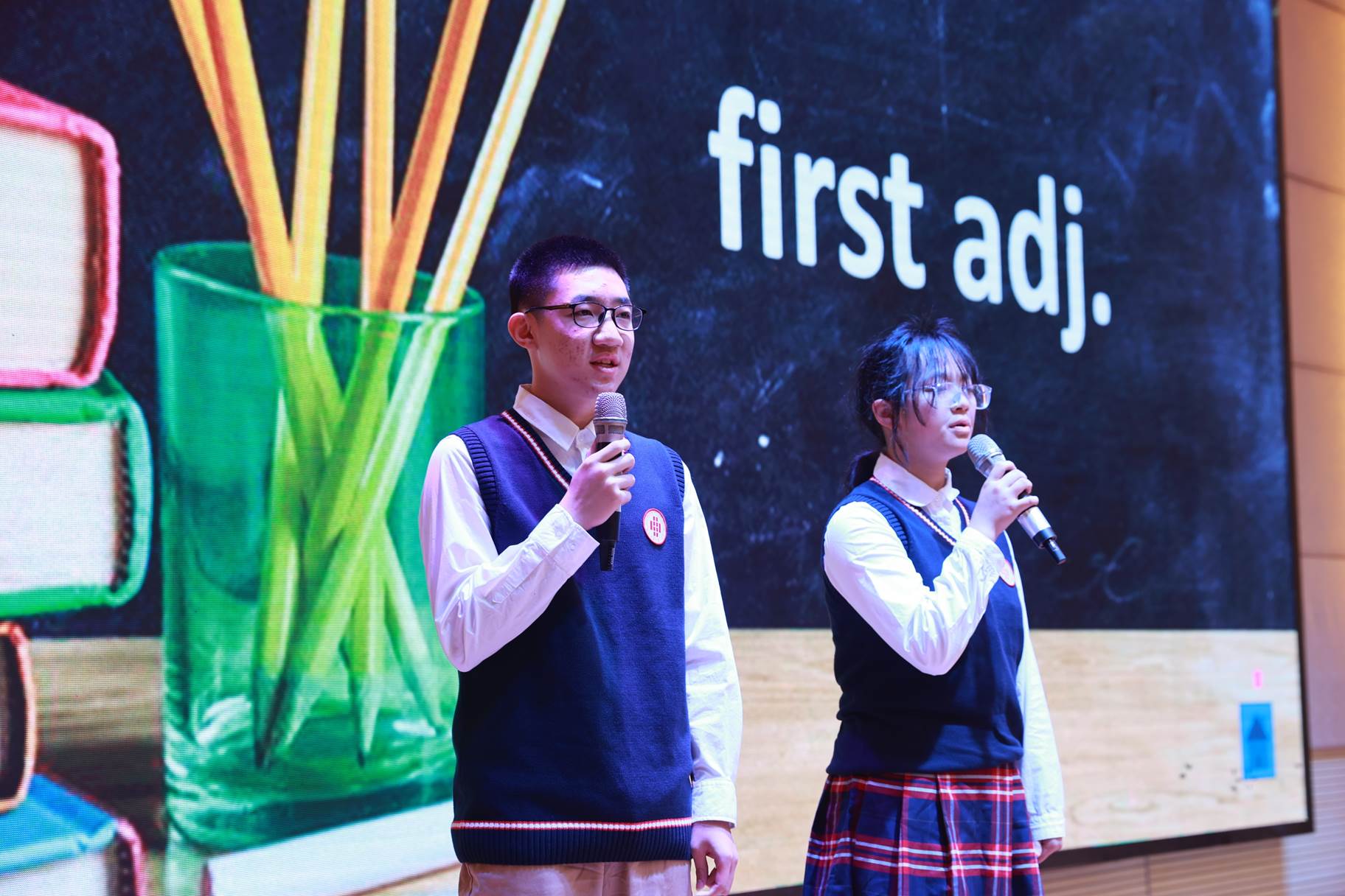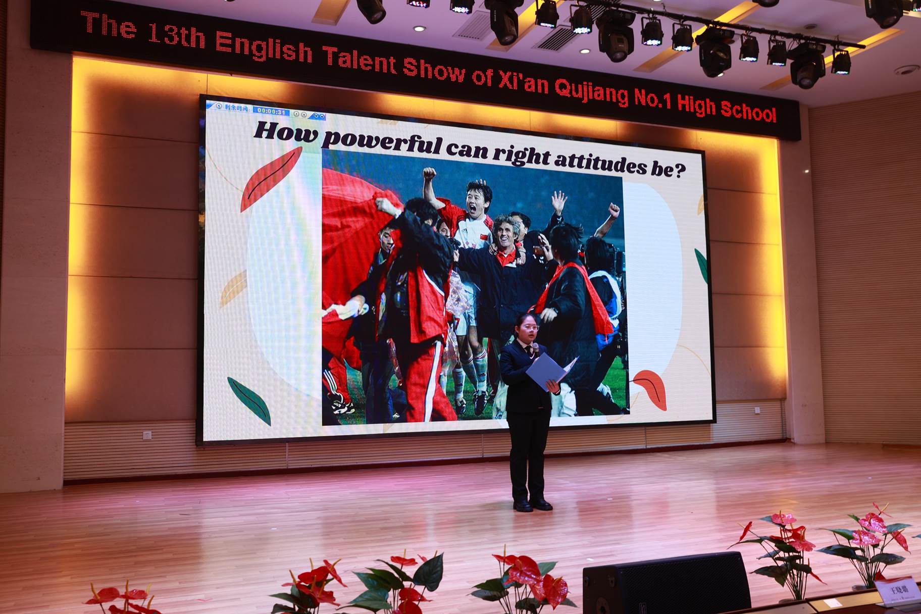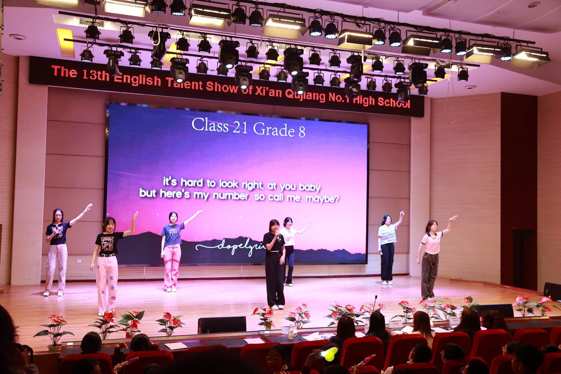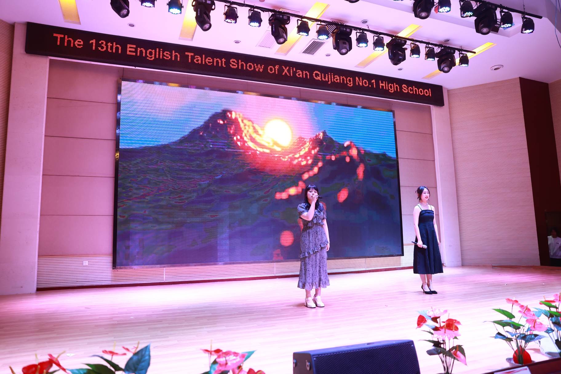 “SHOW”出青春、“英”你精彩。绚烂多彩的五月,西安市曲江第一中学第十三届英语风采大赛在学校润德厅拉开序幕。5月10日,曲江一中第十三届英语风采大赛(高2021级组)在润德厅举行,校长陈勇刚、政教处副主任董锋、丁慧芸出席活动,英语教研组王文涛、郭妍玲、唐炳儒等老师担任评委。大赛分为个人演讲、心有灵犀、电影配音、英文歌曲演唱、创意风采秀五个环节。在个人演讲环节,参赛选手以流利的口语、标准的发音、自如的演绎深深吸引了观众,抑扬顿挫的演讲、激扬铿锵的语调演绎出对“理想”与“信念”的感悟;电影配音环节别开生面,让所有观众一同沉浸《疯狂动物城》的欢笑与感动,感受《四色战记》的团结与勇气、赞叹《青春变形记》的智慧与担当;英文歌曲演唱环节加入舞台剧、歌舞秀等形式,无不让大家感叹曲一学子的才华和风采。
