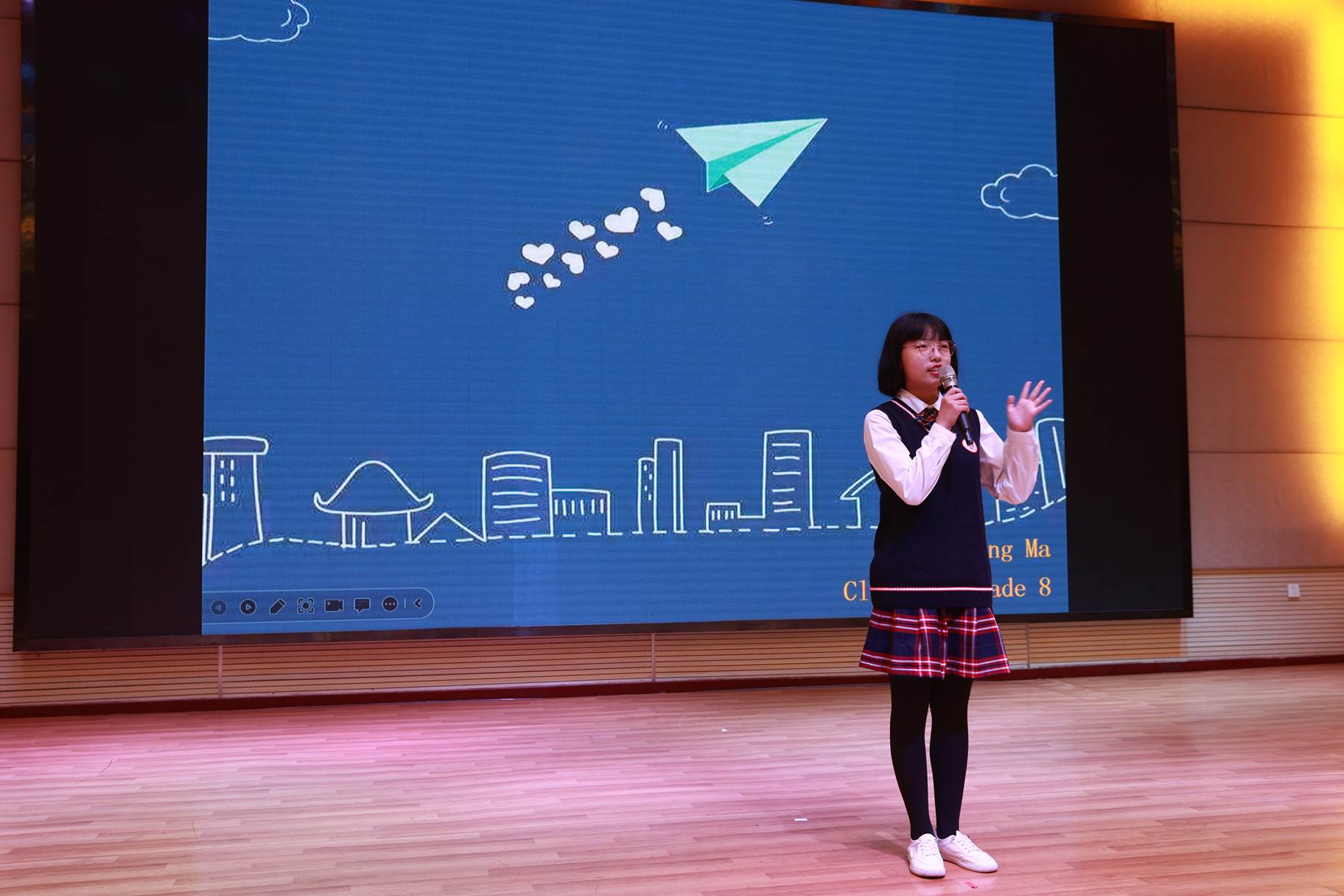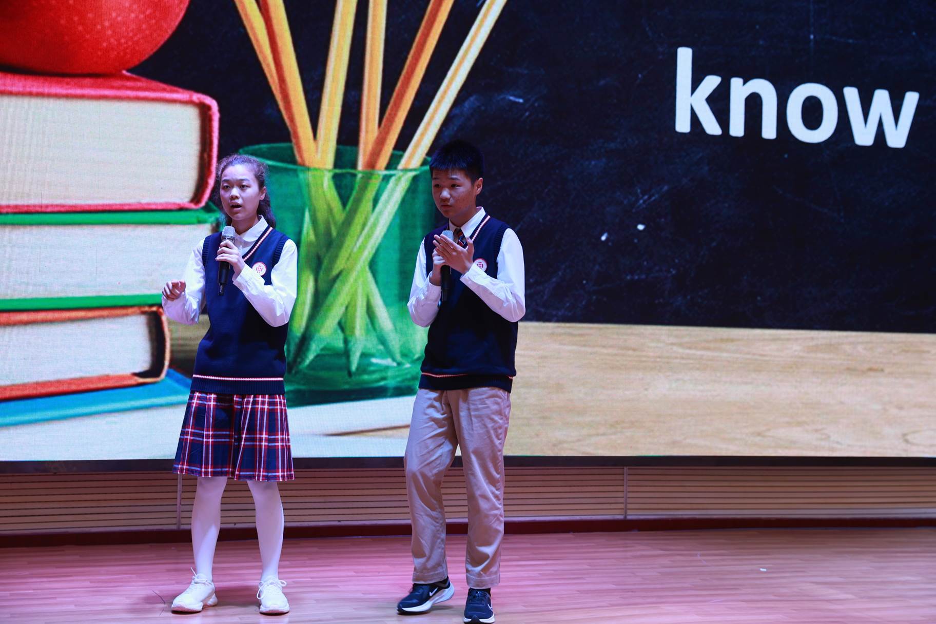 双减为翼,素养为基。本次大赛在我校思维型教学理论引领下创新了活动形式,舞台剧、歌舞秀、话剧、古典乐器配英文朗诵等异彩纷呈,多形式的展示促进了学生英语学科的核心素养发展,体现了我校思维型课堂教学与学生特色发展的有效结合。同时,学校学生会充分发挥主观能动性,参与比赛筹备、会场组织、舞台策划、手绘节目单等,提升了学生综合素质水平和自我管理能力,充分彰显了我校“学生第一、特色发展”的办学理念。