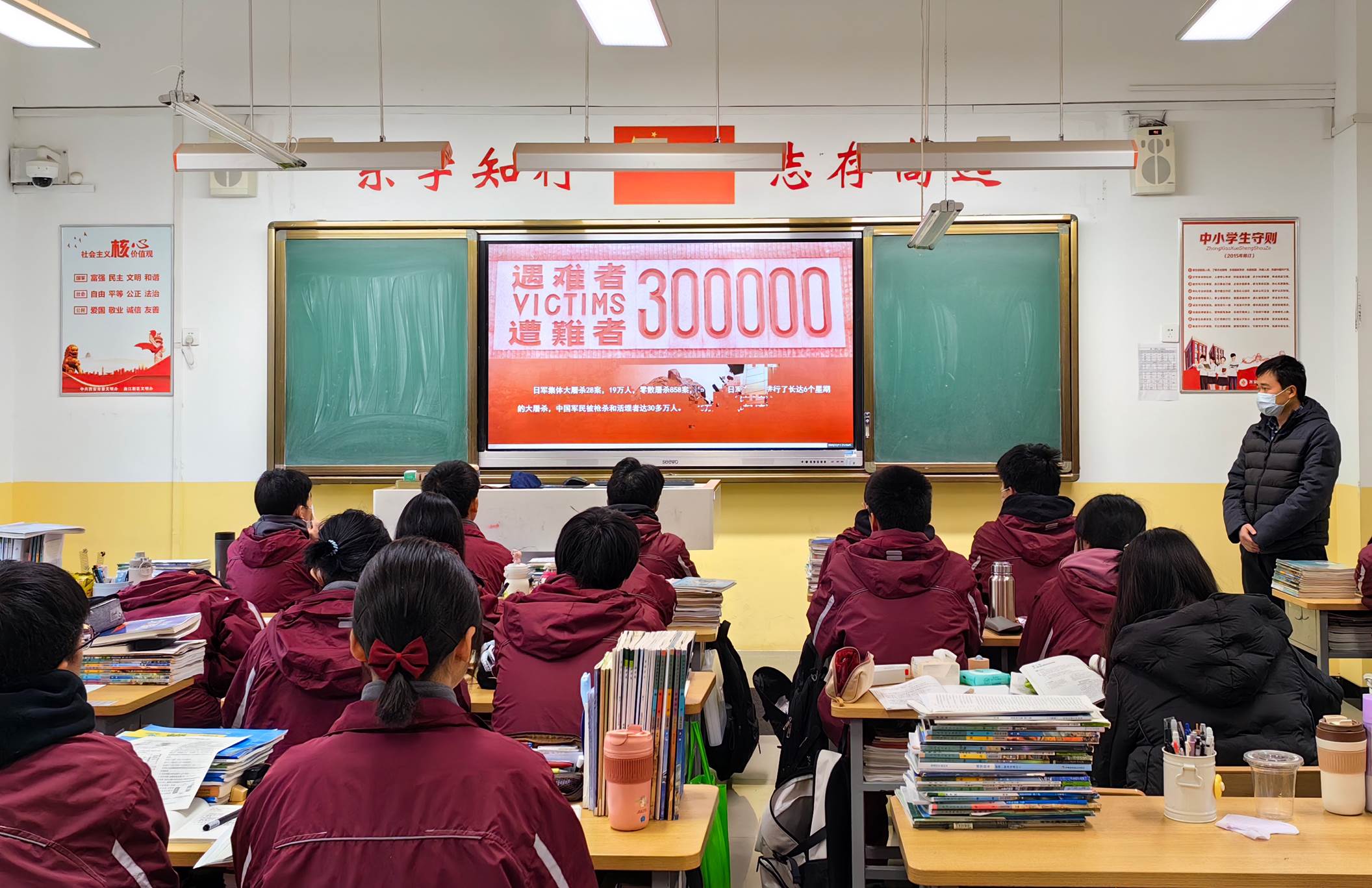 2023年12月13日是第十个南京大屠杀死难者国家公祭日,西安市曲江第一中学组织开展了以“勿忘国耻 振兴中华”的国家公祭日主题教育活动。活动通过国旗下主题演讲、观看视频等形式,表达对南京大屠杀中死难同胞的深沉缅怀,弘扬以爱国核心内容的伟大民族精神,践行社会主义核心价值观,鼓励学生为实现中华民族伟大复兴的中国梦而努力学习。