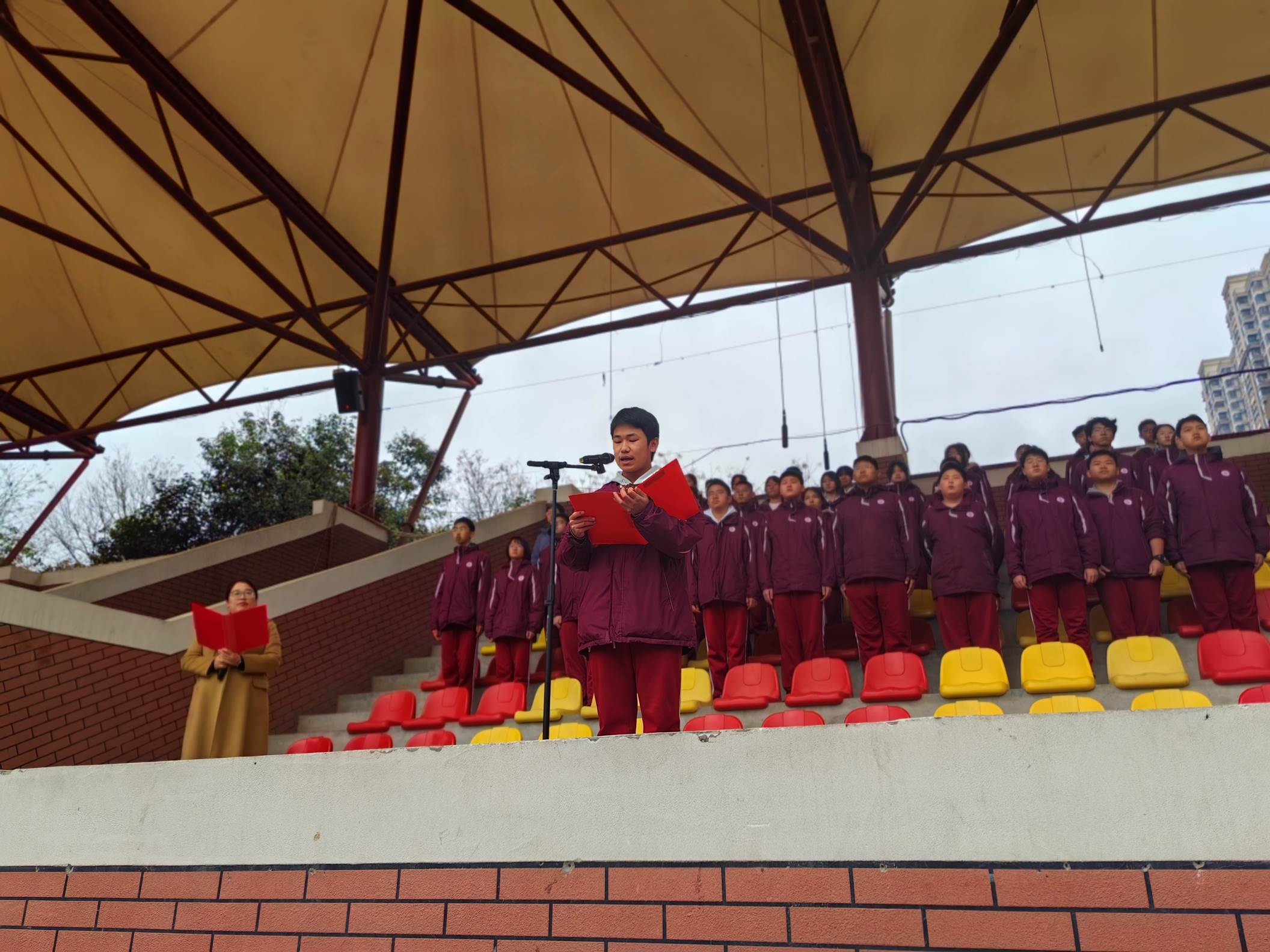 初2022级7班田祺悦同学做了题为《不忘苦难记忆 砥砺复兴之志》的国旗下演讲。田祺悦同学说道,我们要接过革命先烈手中的光辉旗帜,适应新时代发展的要求,锐意进取,自强不息,真正把爱国之志变成报国之行。