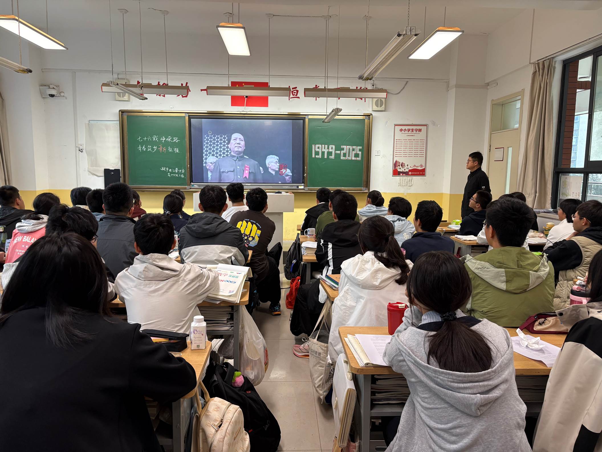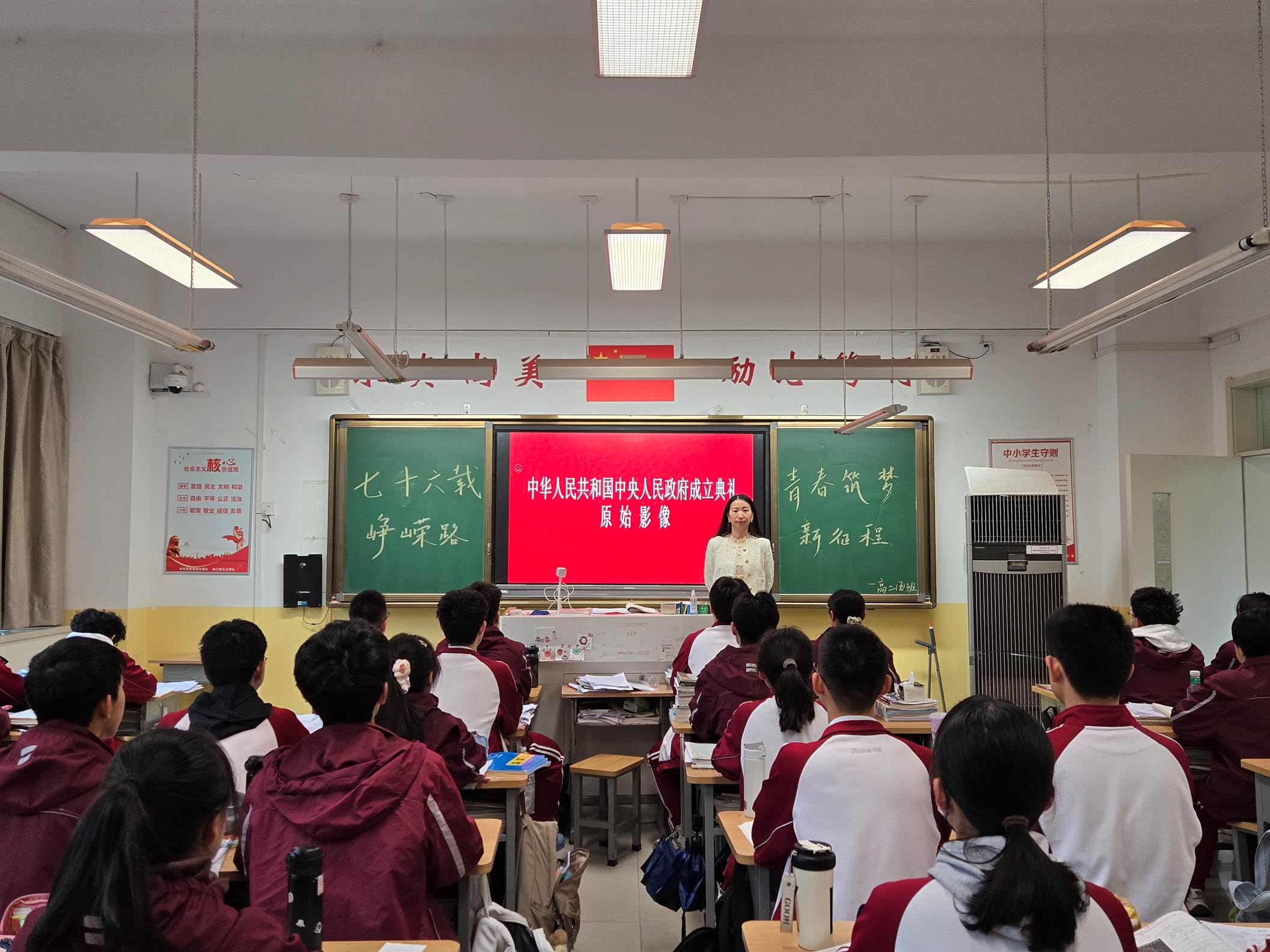 为庆祝中华人民共和国成立76周年,让同学们深入了解国庆节的重要意义,继承和弘扬爱国主义精神。9月29日上午,西安市曲江第一中学组织全体学生在各班教室开展“七十六载峥嵘路 青春筑梦新征程”——庆祝中华人民共和国成立七十六周年主题班会。