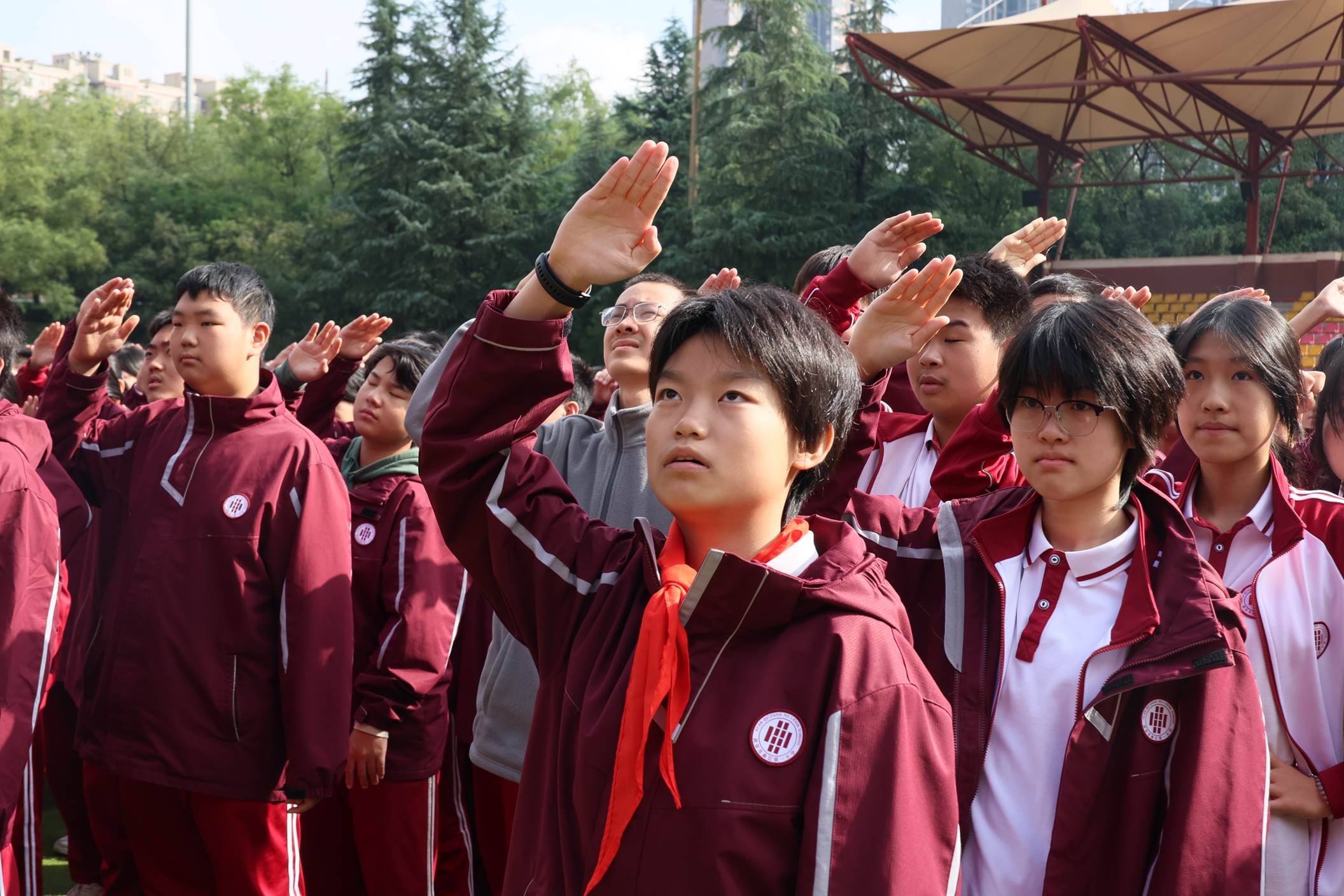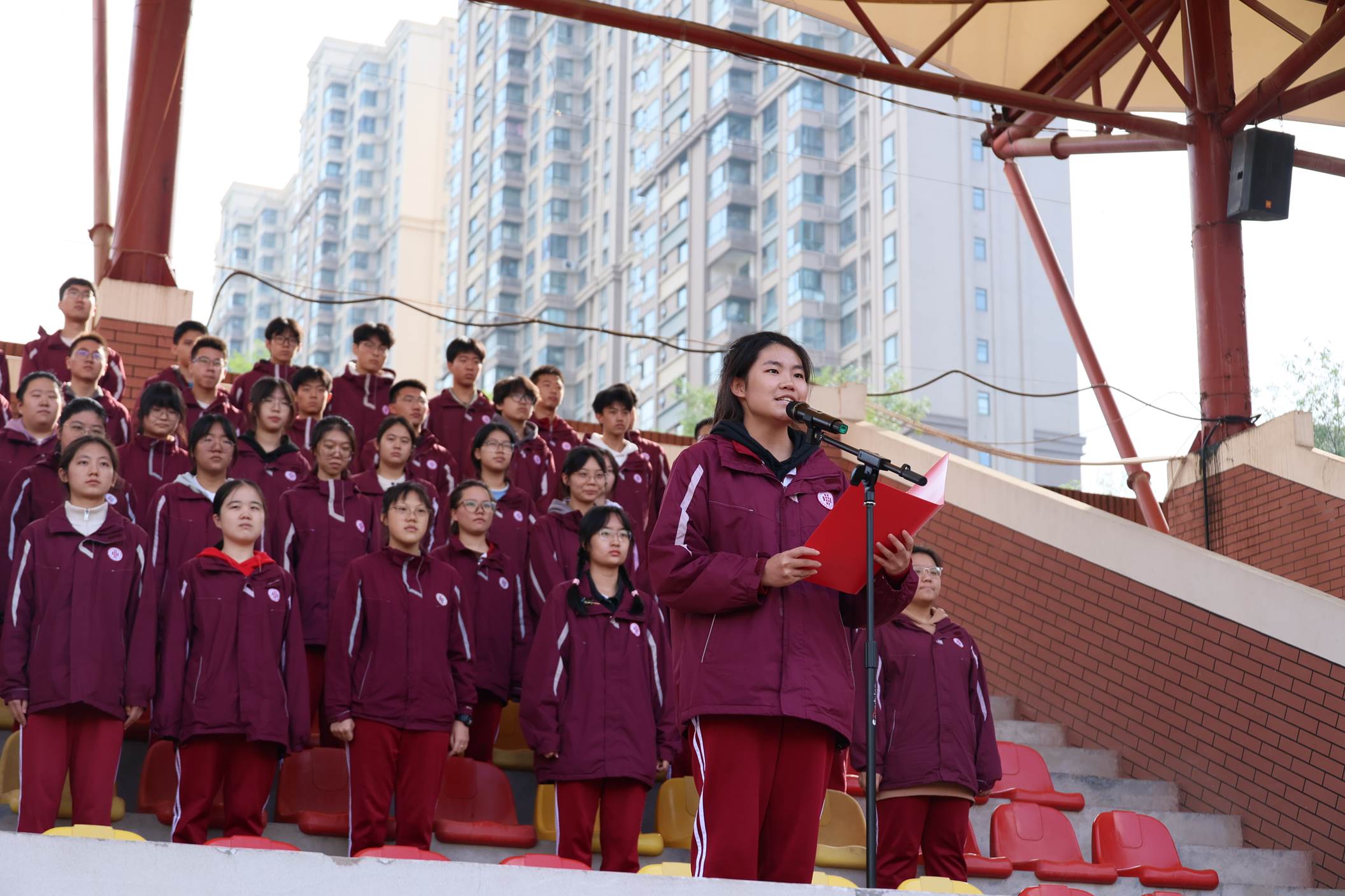 2025年10月13日上午,西安市曲江第一中学举行本学期第八周升旗仪式,仪式由政教处副主任董锋主持。