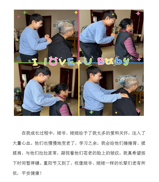 此次重阳节系列活动,不仅是一次传统文化的传承,更是一堂生动的德育实践课。它让同学们在潜移默化中学会了感恩与担当,将孝亲敬老的种子深植于心。今后,我校将继续以传统节日为契机,开展更多形式多样的德育活动,引导学生扣好人生第一粒扣子,成长为有温度、有责任、有担当的新时代好少年。