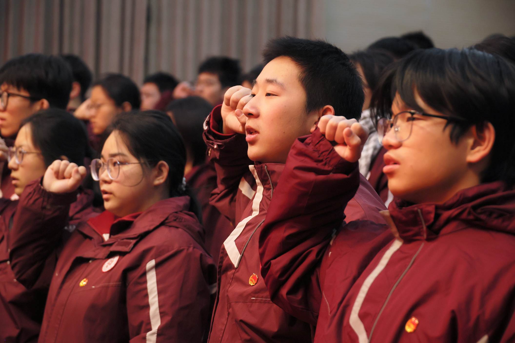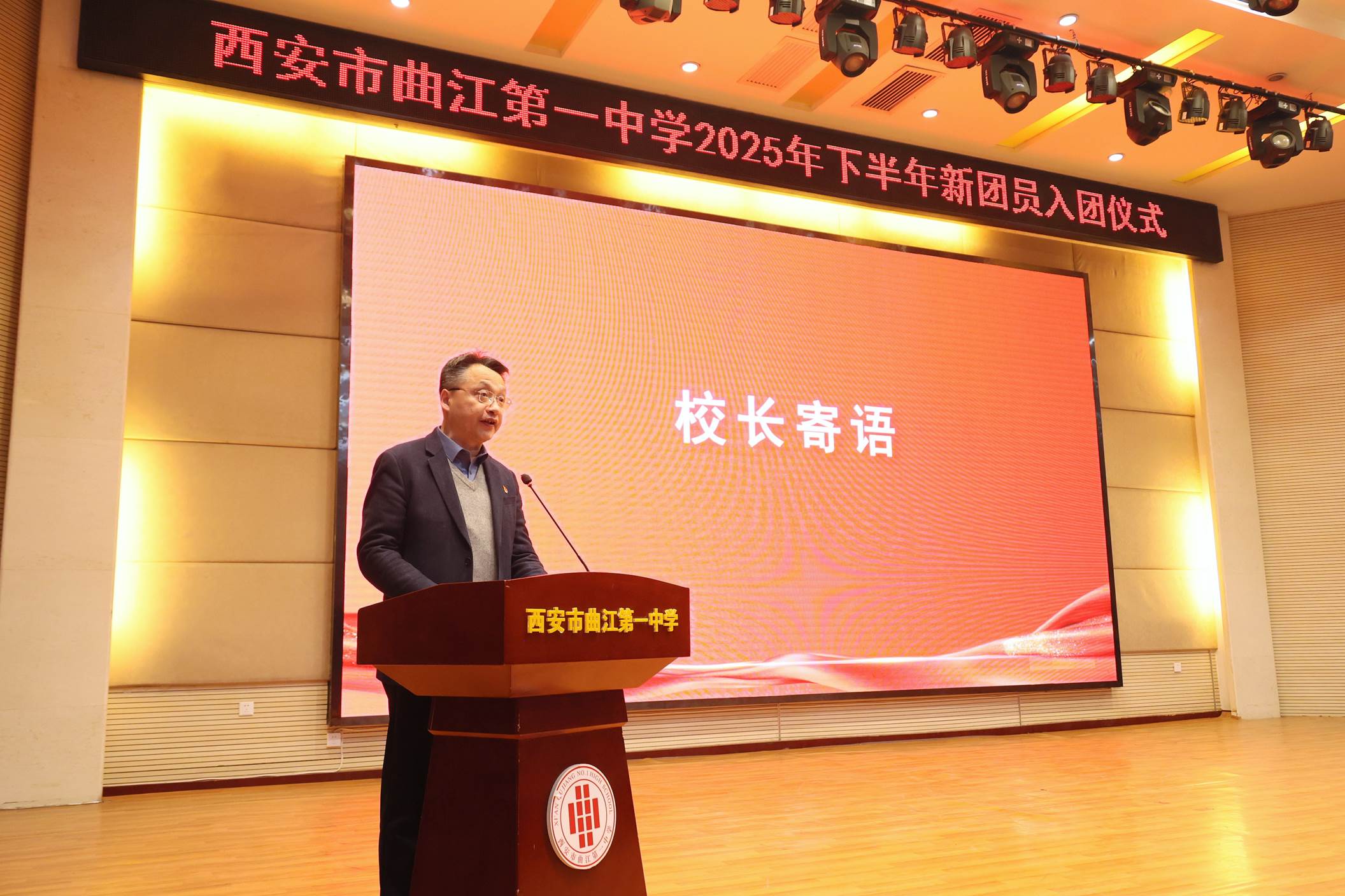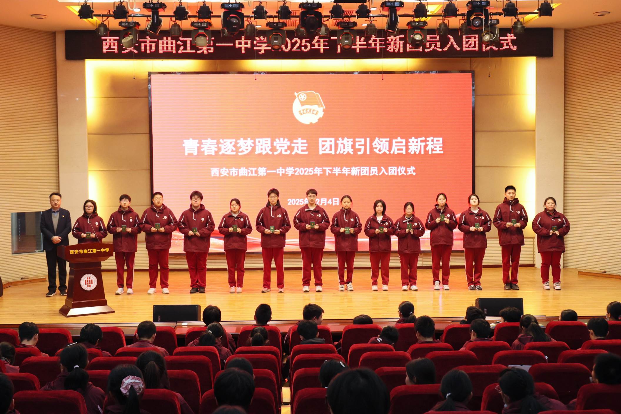 12月4日上午,西安市曲江第一中学举行“青春逐梦跟党走 团旗引领启新程”2025年下半年新团员入团仪式。校长陈勇刚及全体新团员参加仪式,仪式由校团委书记丁慧芸主持。