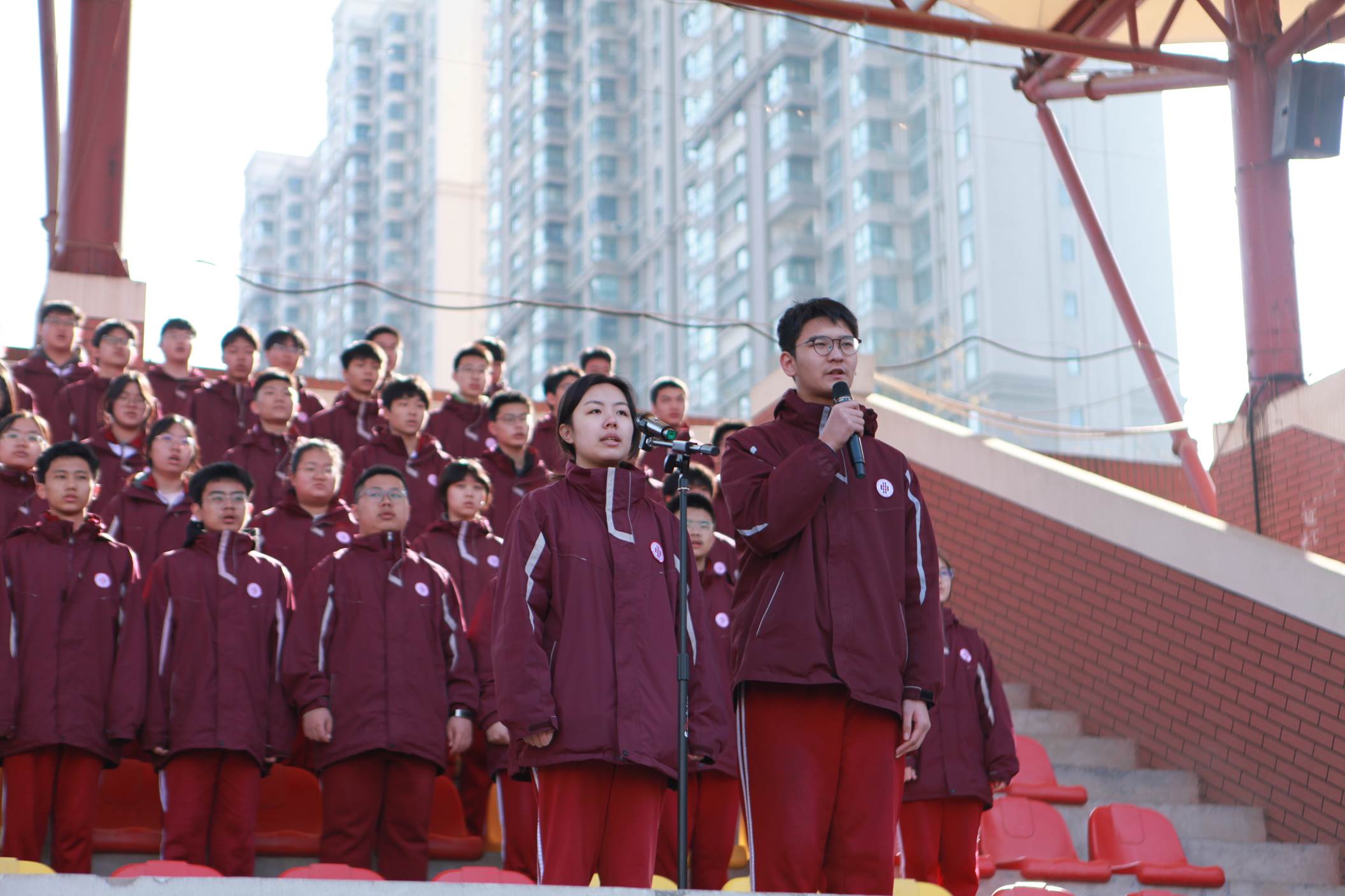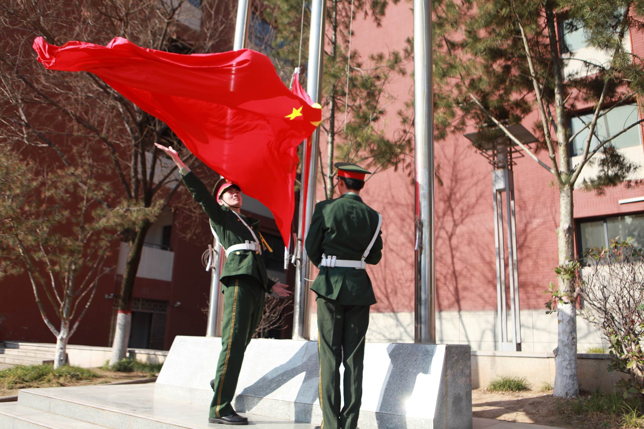 2026年3月9日上午,西安市曲江第一中学举行本学期第二周升旗仪式,仪式由政教处副主任董锋主持。