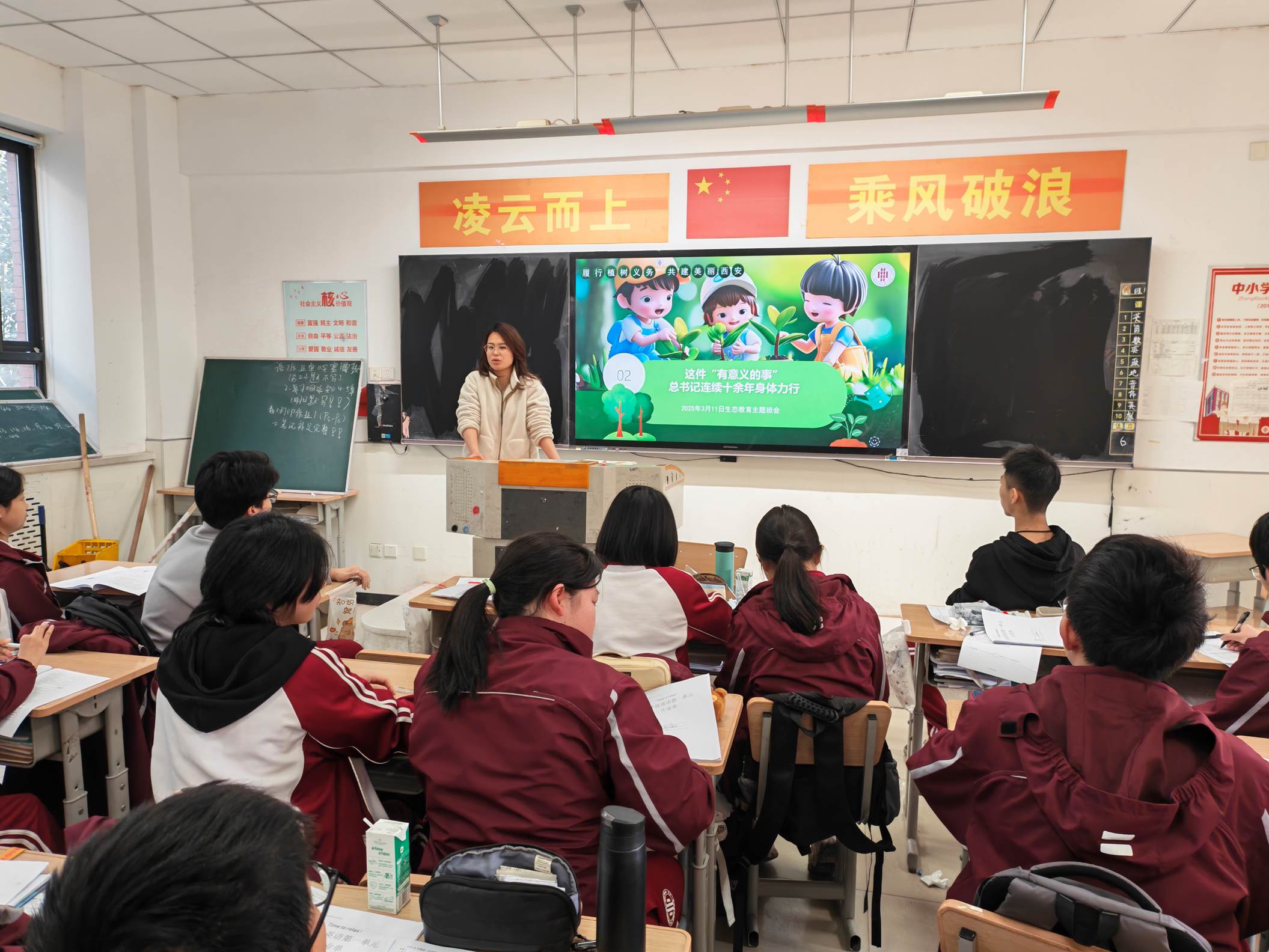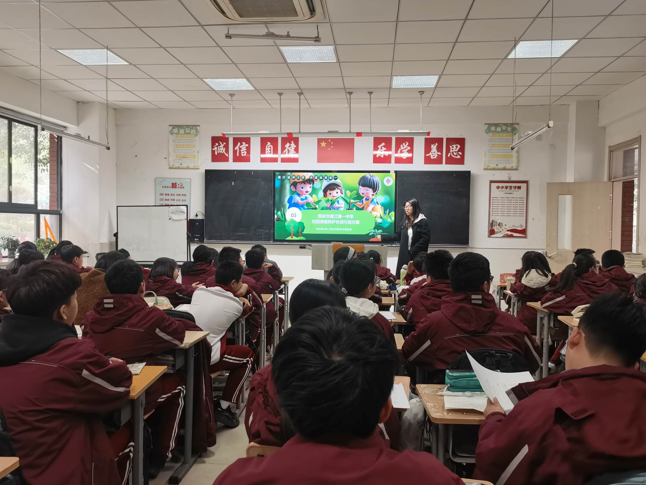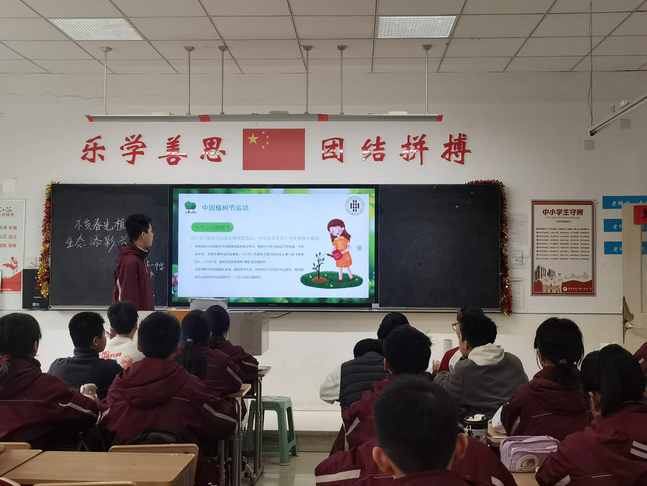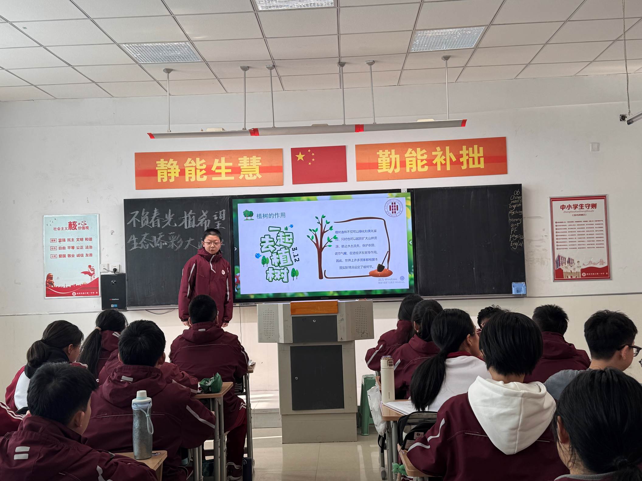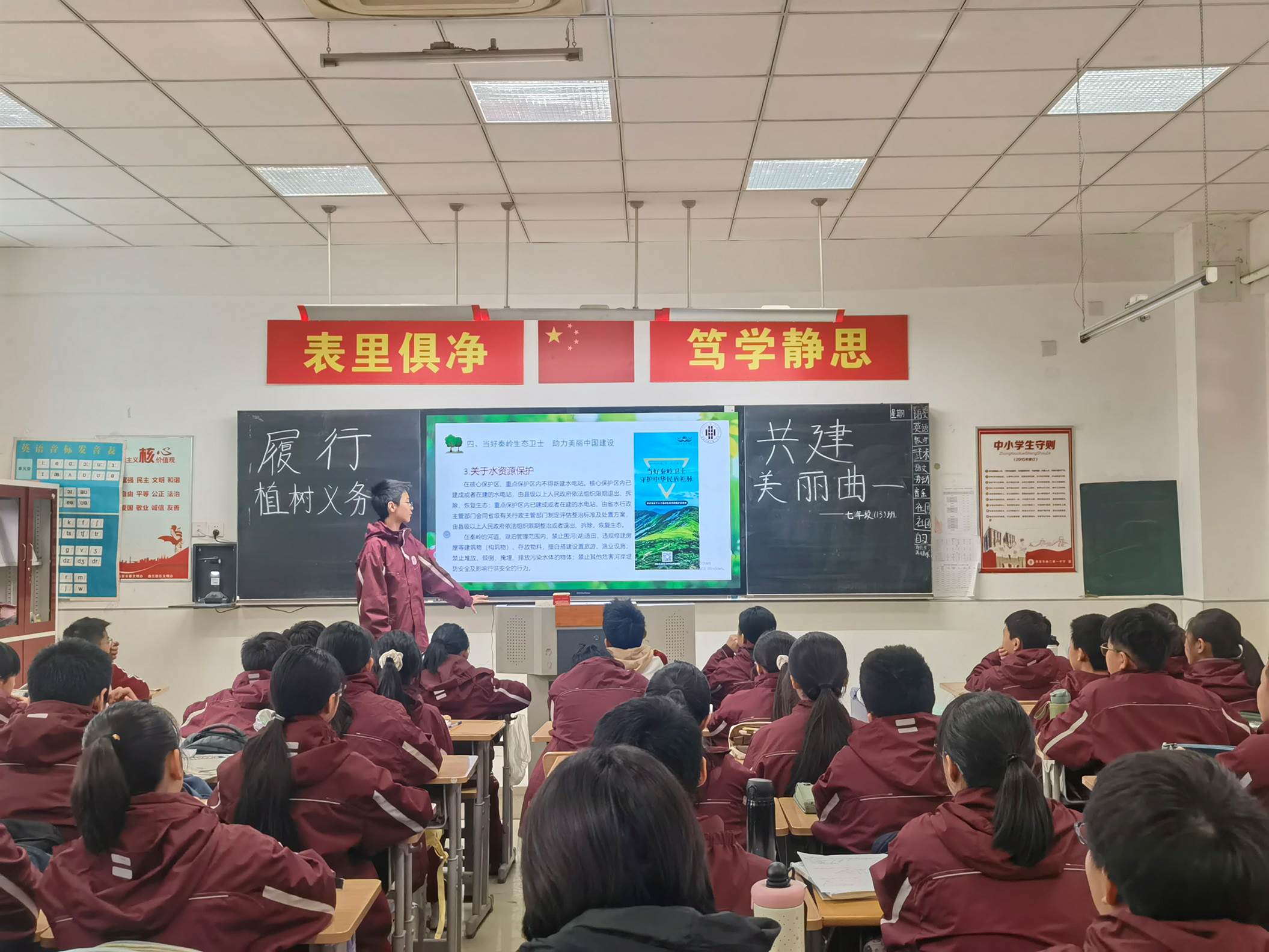 2026年3月11日,初2025级年级组召开“不负春光植希望 生态添彩兴三秦”主题班会,24个班级同频共振,同学们学习“两山论”理念的提出与发展历程,观看《这件“有意义的事”总书记连续十余年身体力行》视频。同学们以“履行植树义务,共建美丽中国”为主题,绘制班级名片,营造浓厚的植绿、护绿、爱绿氛围,为美丽西安添彩。