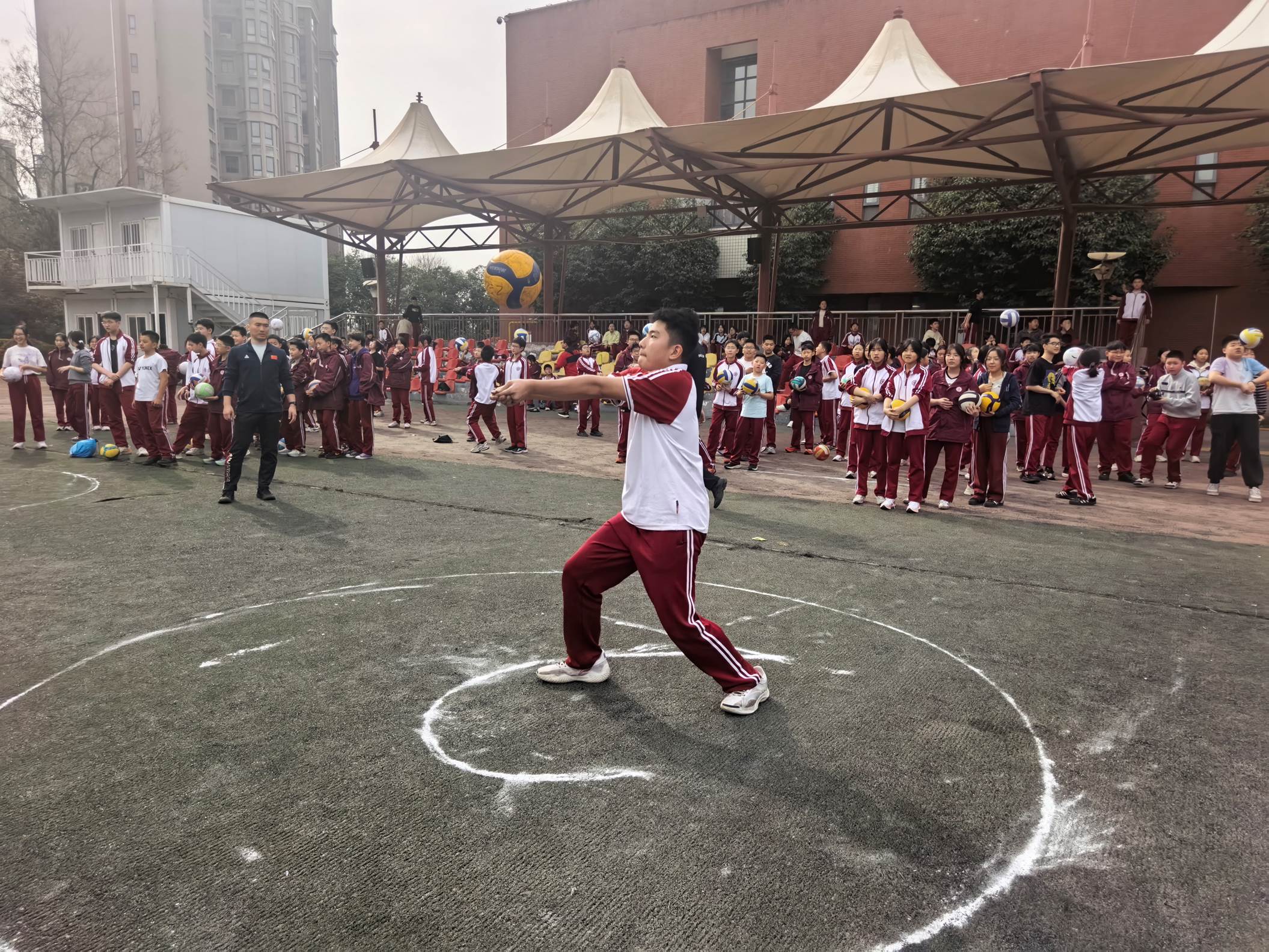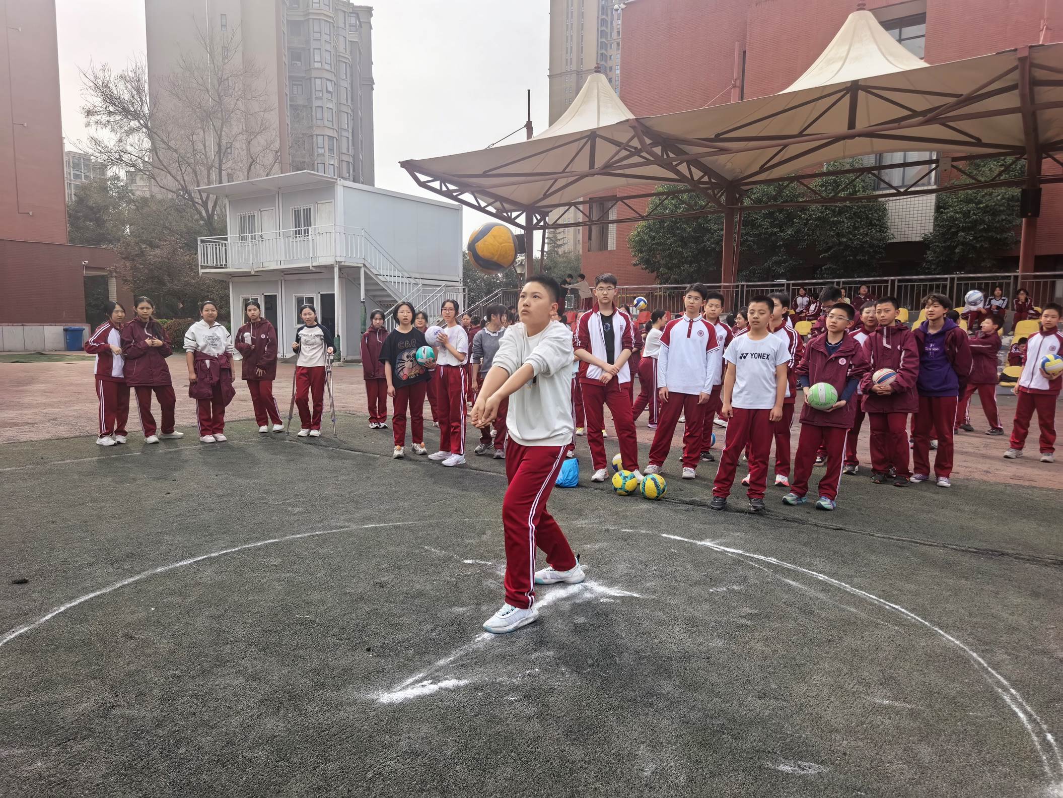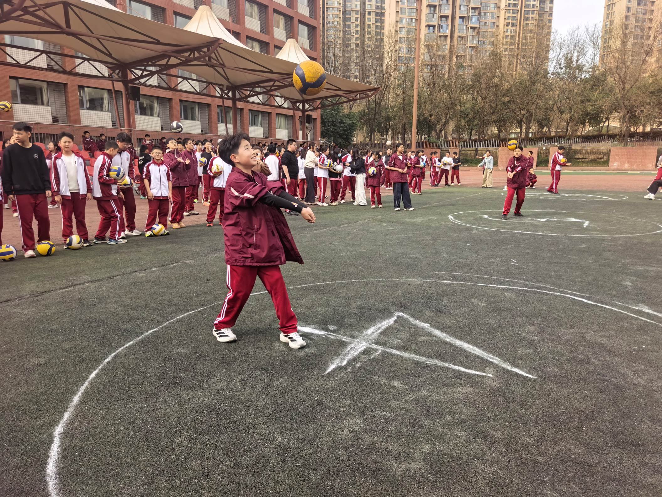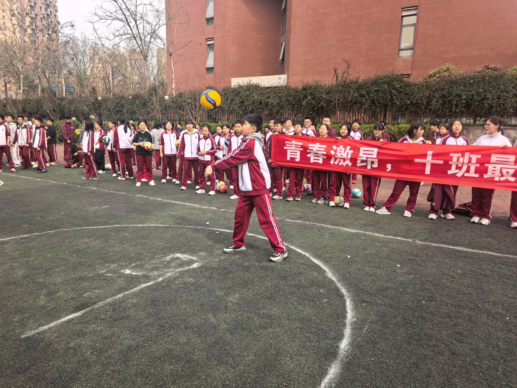 2026年3月27日下午,西安市曲江第一中学初2025级在西区操场,开展了精彩纷呈的排球原地自垫球比赛,深入贯彻“五育并举”,切实增强学生体质,丰富校园课余生活,提高学生的排球运动技能。