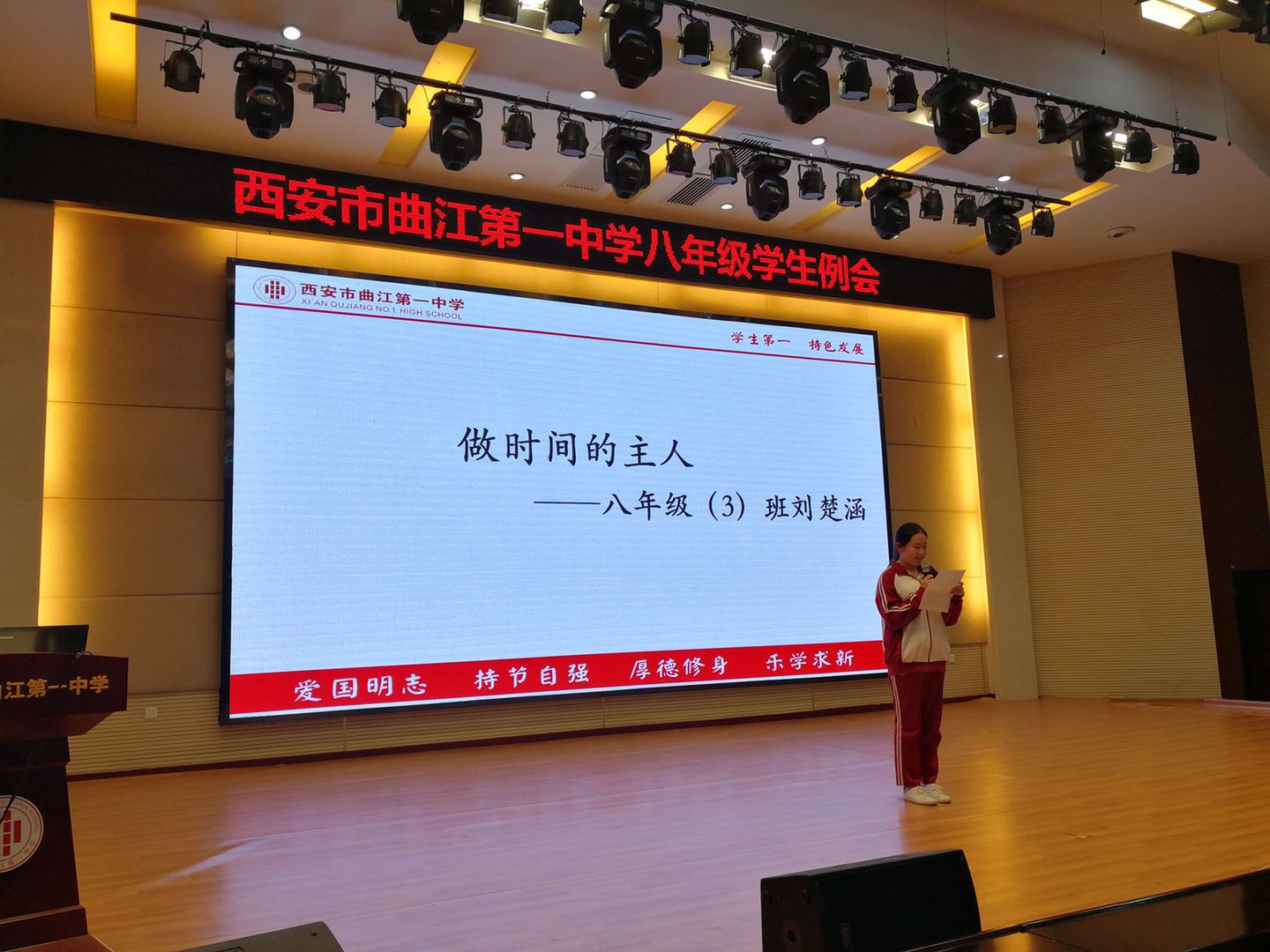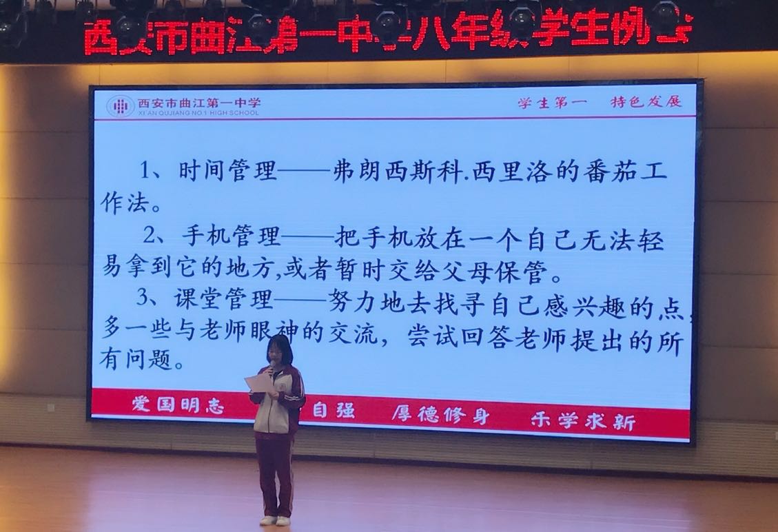 会议第二项,班主任上台为表现优异同学颁发荣誉证书与奖品,令人振奋的颁奖词和老师寄语引起了场内同学的阵阵掌声。随后,几位优秀学生代表的经验分享则将本次例会推向了又一次高潮,3班刘楚涵的《做时间的主人》,6班郭远帆的《本固枝荣,有效提升》,10班丁一丹的《踏实行走,且行且思》,1班郭思语的《精准学习定位,科学管理时间》,7班邓子钰的《让内驱力成为我们前行的动力》,8班郭子健的《路在脚下》,11班朱雨欣的《态度+方法+努力=进步》无一不是制胜宝典,学生代表的发言真诚感人、深入人心,既展现了个人的风采,又想同学们分享了自己的学习经验。