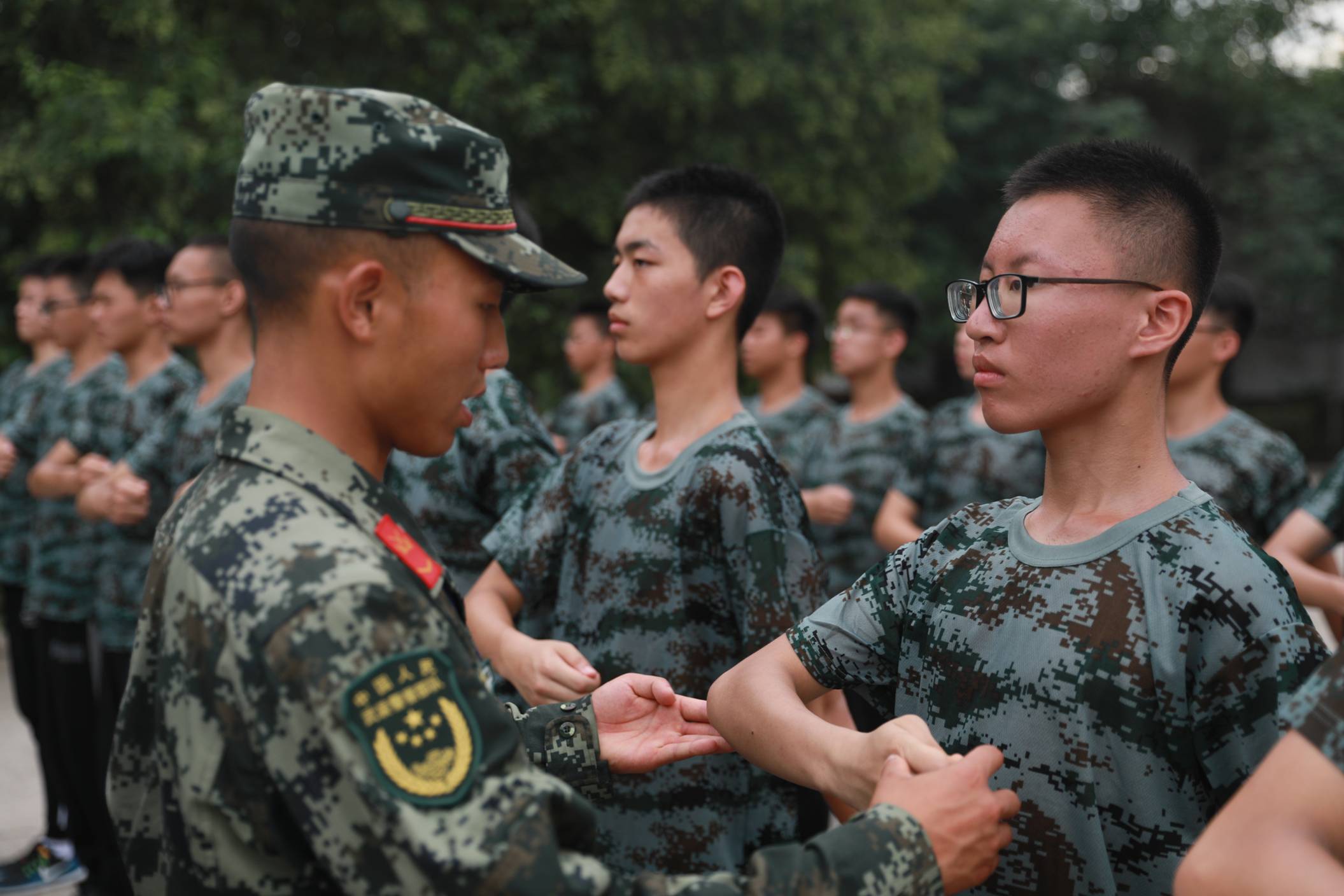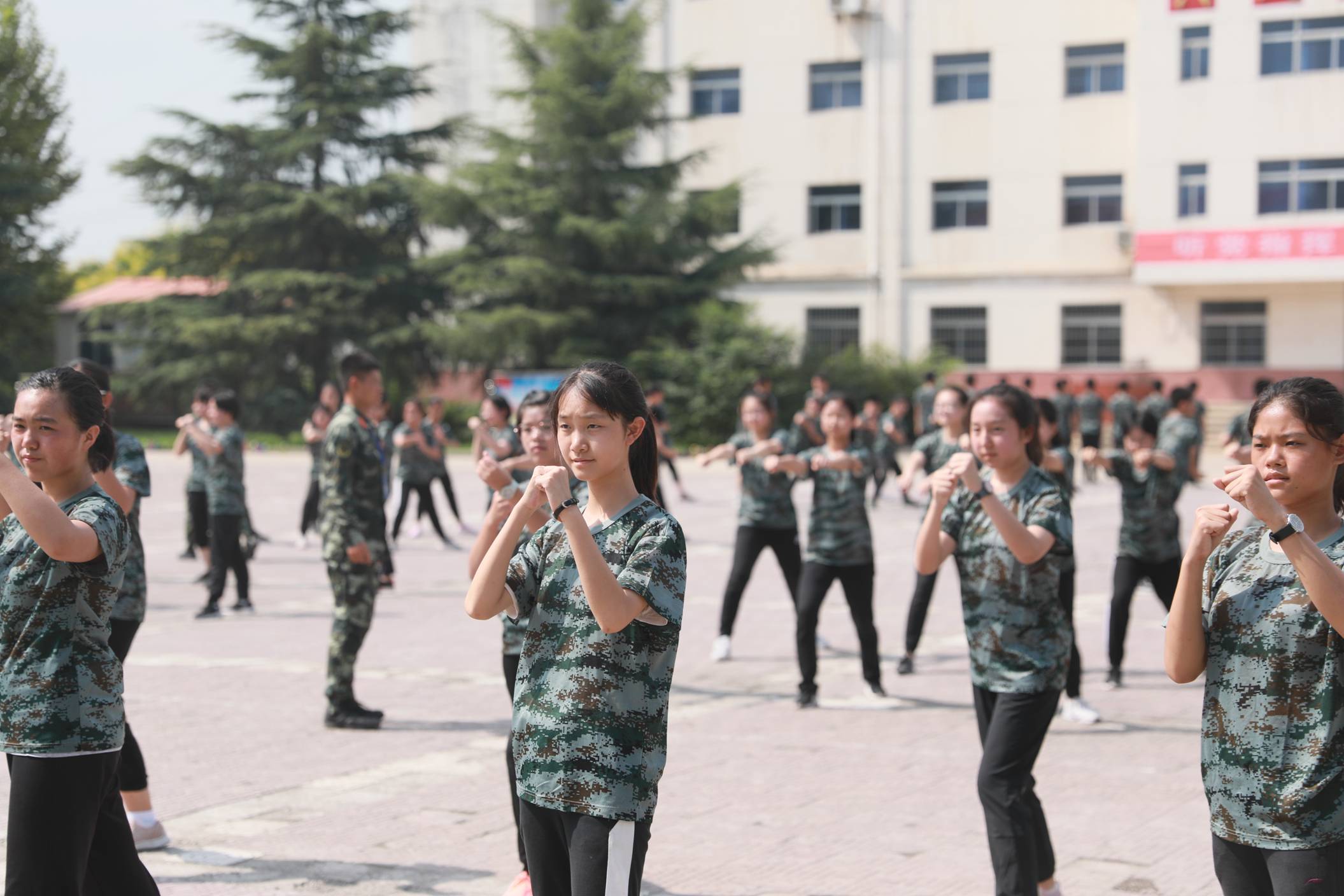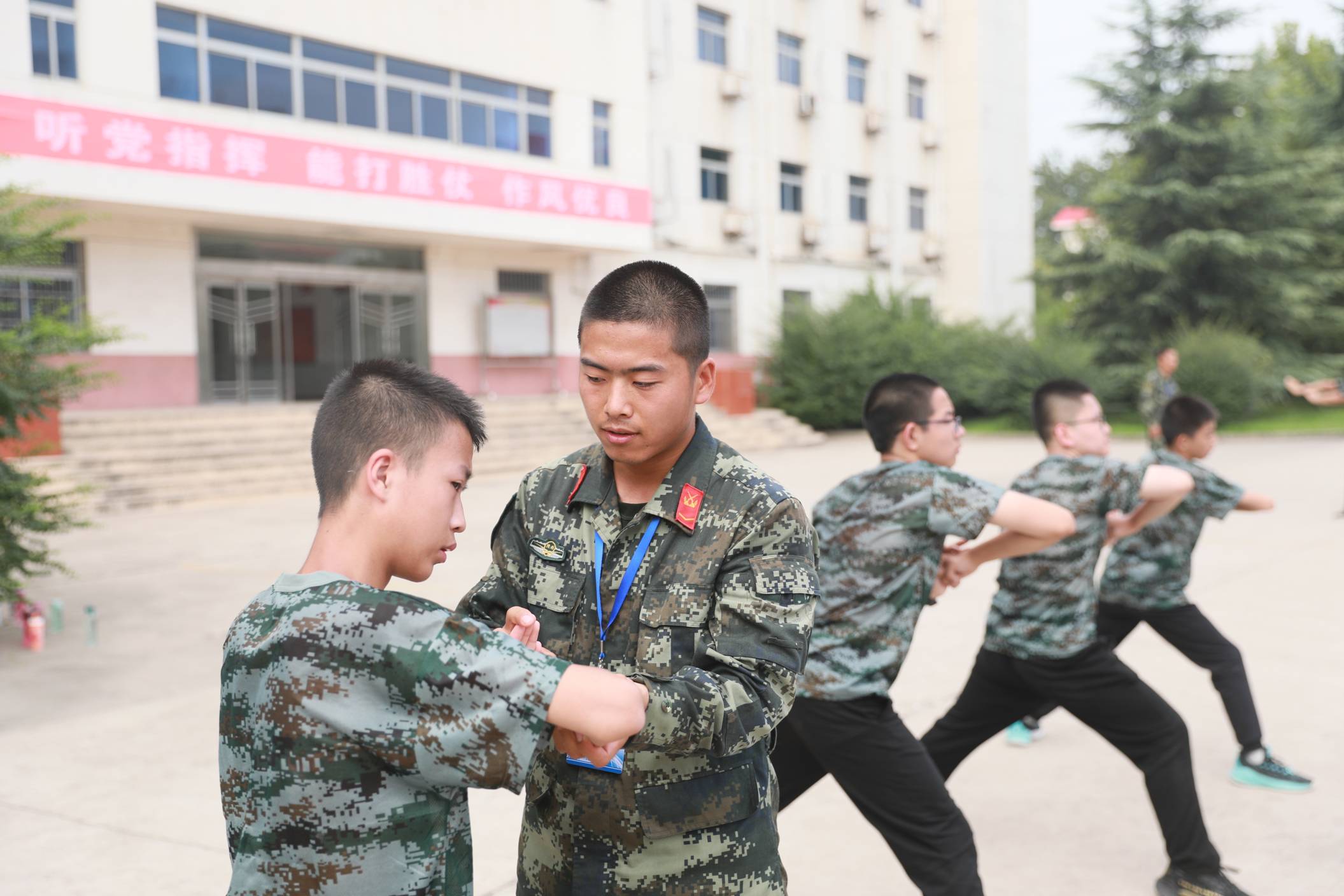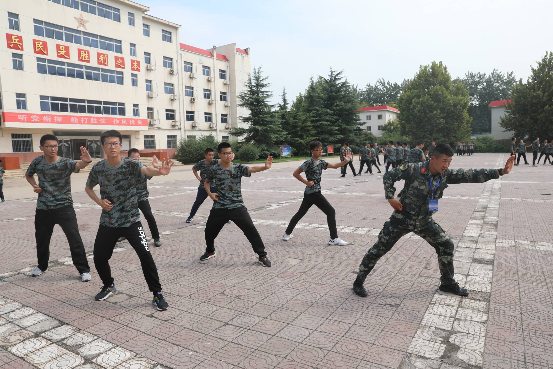 上午,铿锵有力的脚步声依旧回荡在整个训练场,前后强劲有力的摆臂,左右坚定的步伐,向前跃出的勇气,大家一遍遍地训练,时间飞逝,只见同学们的体态更加端正,动作更加坚定,口号更加响亮,一个个班级队伍中的小份子,迈出整齐的步伐,摆出同样标准的姿态,集体的力量是巨大的。“上午训练的疲劳在午睡时被甜美的梦境化为乌有”(高2019级4班许韵卓军训日记)。午后,同学们依旧满怀热情地继续学习擒敌拳。擒敌拳出拳敏捷,动作灵活且具有极强的侵略性,“最令人难忘的还是学习擒敌拳了。看着教官们出拳时英俊的身姿,敬意油然而生,这是多少个日夜努力的结果啊”(高2019级5班阮子健军训日军),同时,学习擒敌拳训练中的同学们还接受了武警陕西总队政治委员龚冠宇的检验,曲一学子受到了龚政委的高度评价。