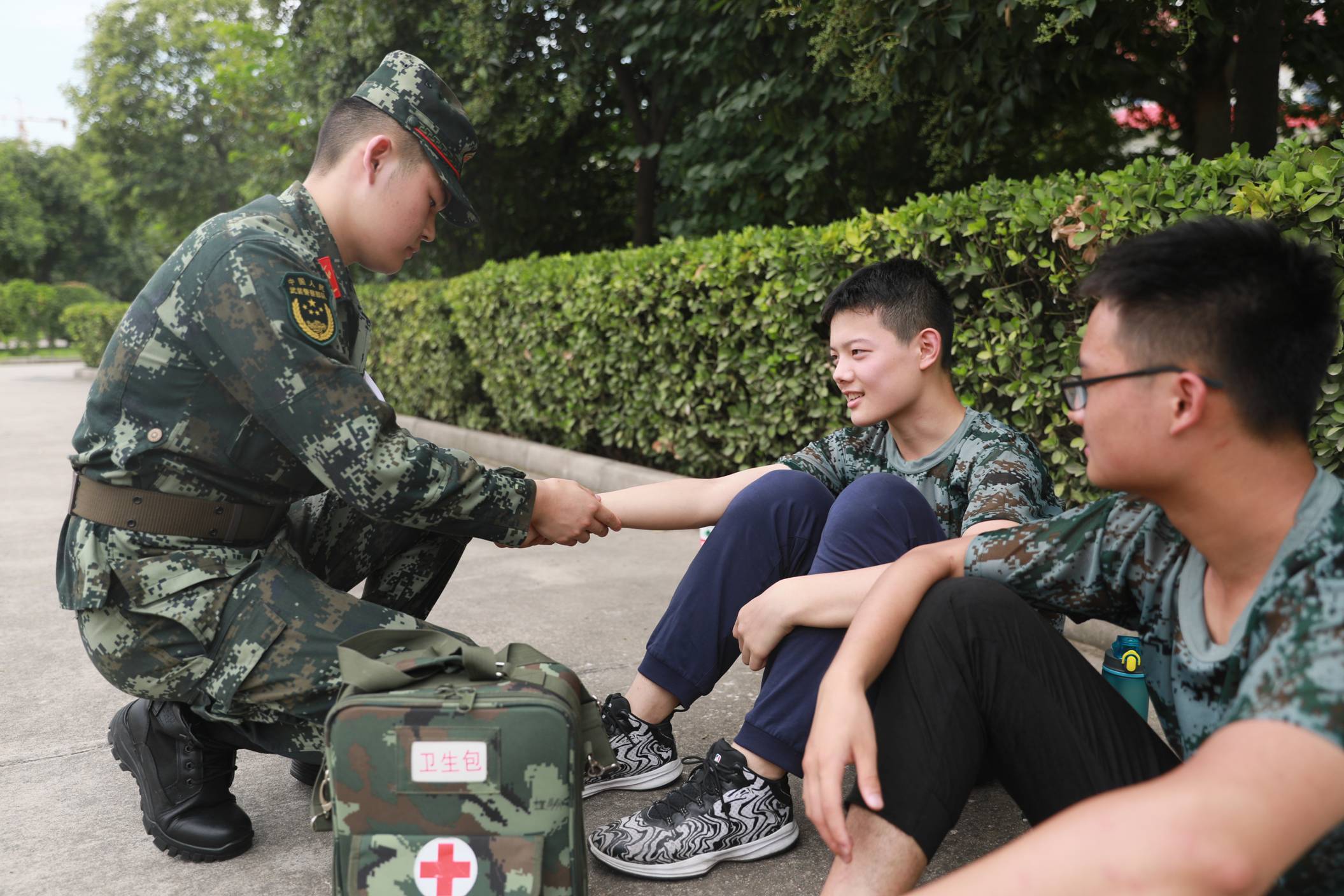 对于教教官,“让我最感动的是连长,平日里训练严苛的他晚间休息来到宿舍”,与训练时截然不同,“嘘寒问暖,让我们深刻地体会到了军营之间的师徒、战友情谊”(高2019级3班蒋金阳军训日记)。每位教官都是有情怀、有温度,更是有远志的青年,他们看似非常严肃,却善解人意,训练结束后都难掩可爱的一面。“军人们身着挺拔的制服,英姿飒爽,士气勃发,作为我们的教官,尽管开始显得严厉,但随着一天的相处,我们渐渐体会到了教官们的责任心与幽默感。”(高2019级孙欣雨军训日记)