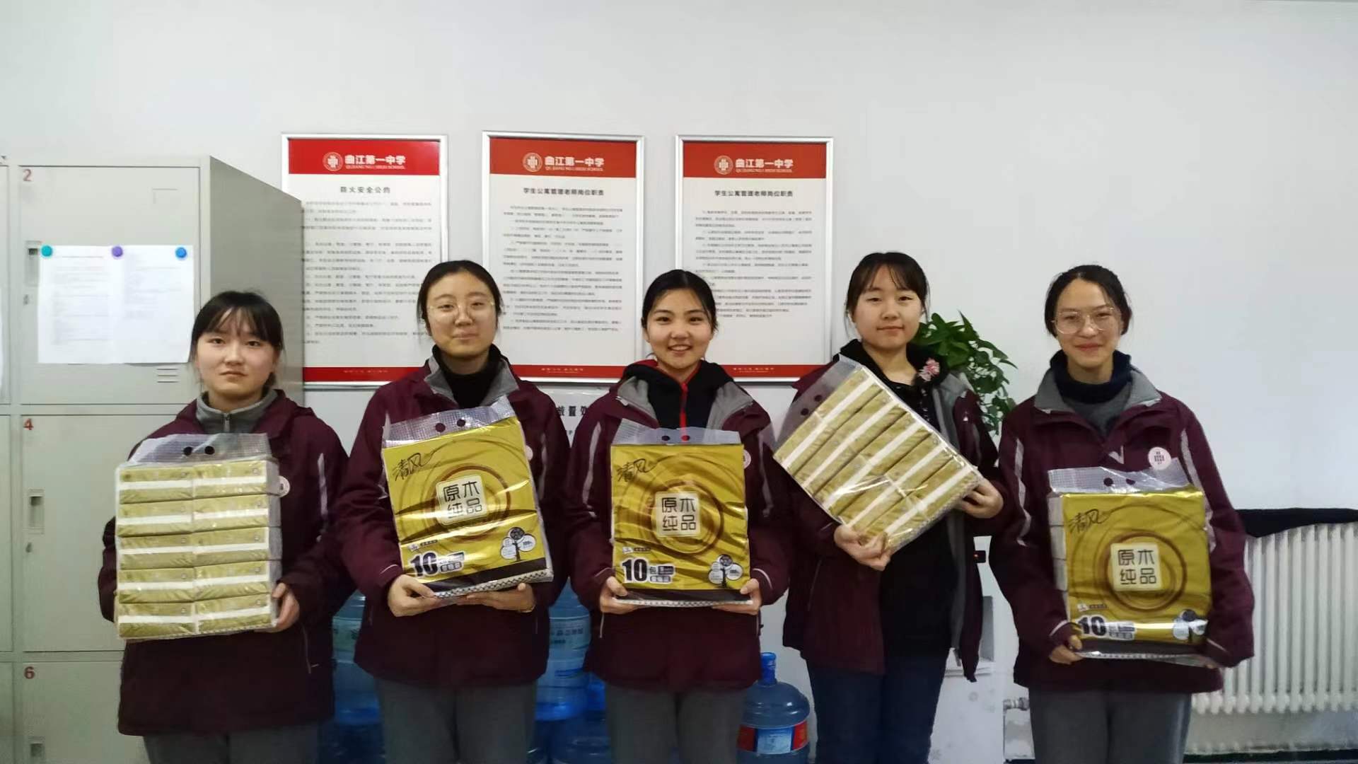 元月18日中午12时30分,总务处主任王锦为优秀宿舍的学生颁发了奖品,并鼓励住校生们再接再厉,争取在今后的学习和生活中更进一步,用优异的学习成绩来汇报家长和老师,为住校生继续做好表率。同时,王主任也为政教处和总务处一个学期的辛勤工作给予了充分肯定,并对四名公寓生活老师不辞劳苦的工作表示感谢。在下学期的工作中,曲江一中会一如既往地对住校生从严管理,为莘莘学子们的学业有成贡献一份自己的力量。