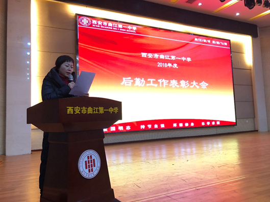 随后,本次大会进行了第二项内容——后勤工作表彰大会。此项内容是嘉奖奋战在后勤服务工作一线的基层员工。王主任分别为各单位先进个人进行了表彰,获奖人是由各单位员工选举产生,旨在嘉奖那些在2018年后勤工作中表现突出的员工,他们在各自的岗位上兢兢业业,任劳任怨,共同肩负起了曲江一中后勤工作的任务。