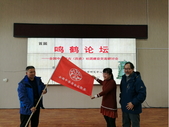 第二天北京大学考古文博学院徐天进教授作了题为《认识世界的一扇窗户——考古学》的专题讲座,讲座深入浅出对什么是考古学、考古学有什么用等理论问题进行了探究,并对中学社团发展规划提出了自己的建议;随后全国考古社代表审议并通过《鸣鹤倡议》,各考古社团代表签字;大会最后一项为会旗转交,基于我校社团的成功开展以及西安背靠的优秀传统文化资源,西安市曲江第一中学成为第二届“鸣鹤论坛”承办单位。
