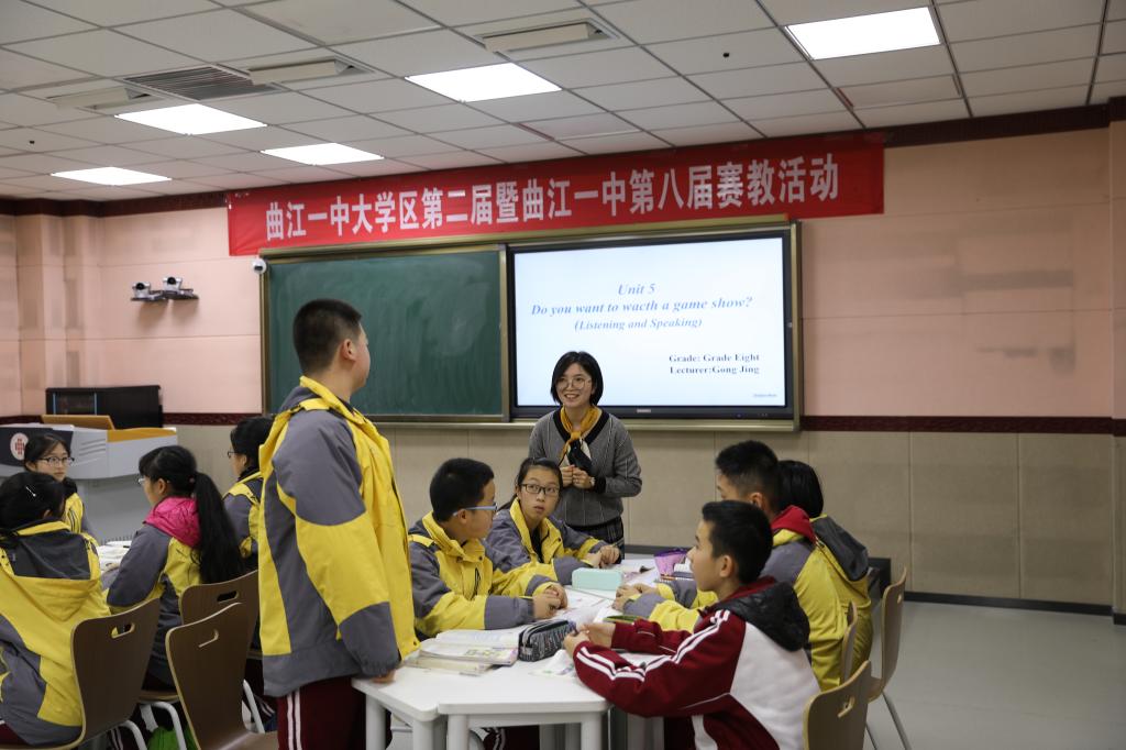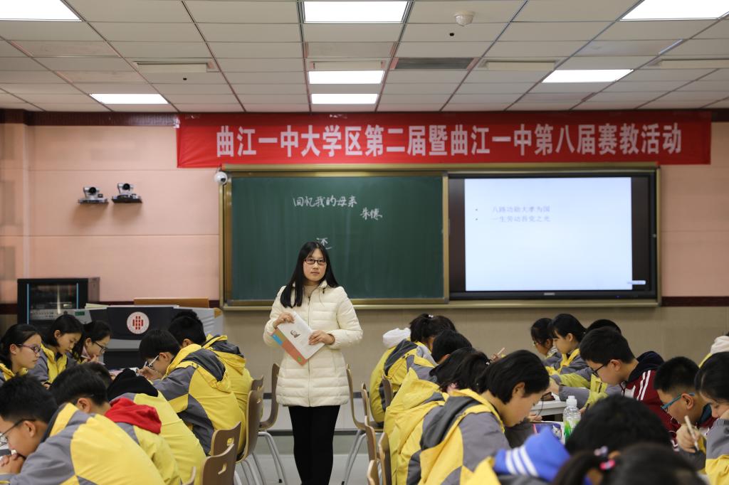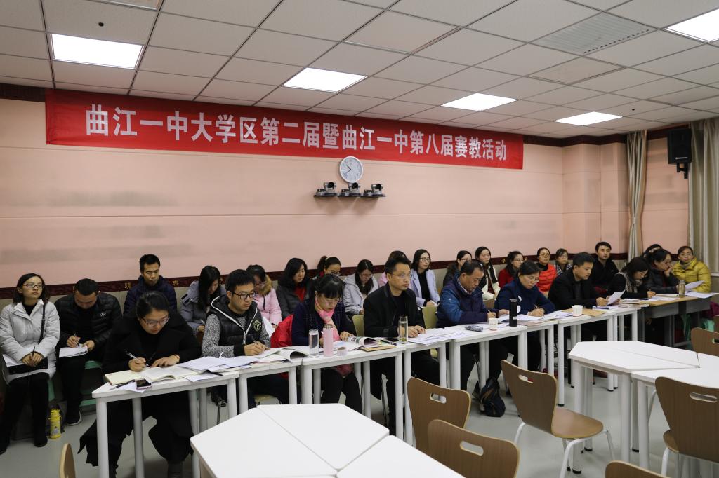 2017年12月18日,西安市曲江第一中学第八届赛教正式拉开了序幕。今年的赛教区别于往年就是在赛制的全新调整上。由过去的提前几天抽题准备到这次提前一个半小时抽题并准备,以往授课45分钟,课后进行说课反思,而此次调整为说课10分钟授课20分钟。这样的调整无疑对教师的业务水平要求极高,然而令人欣喜的初中文科组的老师们各个经得住如此高难度考验,使出了浑身解数,形成了百花齐放的局面。每一学科都有20个备选课题,四位语文老师抽到的课题分别是《使至塞上》《我三十万大军胜利南渡长江》《回忆我的母亲》及《美丽的颜色》,不同题材,不同切点进入文本,基本功扎实不扎实可谓彰显无遮。何丽梅、孟丽静、龚静三位英语老师准备认真,备课充分,课堂效果良好。政治老师马生宝《践行诚信》条理清晰、结合时政,引领学生建立正确的价值观;地理老师王莉思路清晰,语言凝练,基本功过硬,带领我们领略了热带四种不同的气候类型;美术老师席辉上课幽默风趣,把我们带入到了中国三位美术家的作品世界,进行了一场难得的美的教育。心理学张倩老师《沟通,架起心灵的桥梁》通过人与人之间最有效的交流方式“沟通”,来让人更好的交流;历史老师上官晶《近代民用工业的兴办及洋务运动评价》思路清晰,例证丰富,也是一种别样的收获。