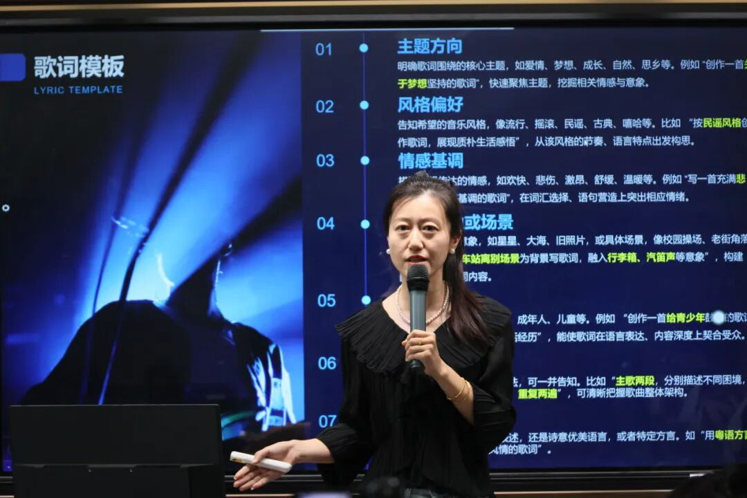 信息技术教师冯超以AI生成的音乐作为导入,通过讲解音乐元素、演示豆包和DeepSeek的指令模板,向学生演示了输入歌词后借助AI生成音乐的方法与步骤。冯老师引导学生分组完成以“梦想启航”为主题的歌曲生成任务。在小组协作的过程中,学生围绕指令优化、风格适配等问题展开讨论,并最终呈现《逐梦少年》等多部音乐作品。该课程以AI融合为核心,构建了“AI技术工具应用—音乐创作实践—多维评价”的完整教学链,通过精准指令训练,提升了学生的实践能力。此外,冯老师还通过分层教学,帮助学生突破AI生成音乐的技术难度,体现了“AI赋能艺术创作”的创新价值。