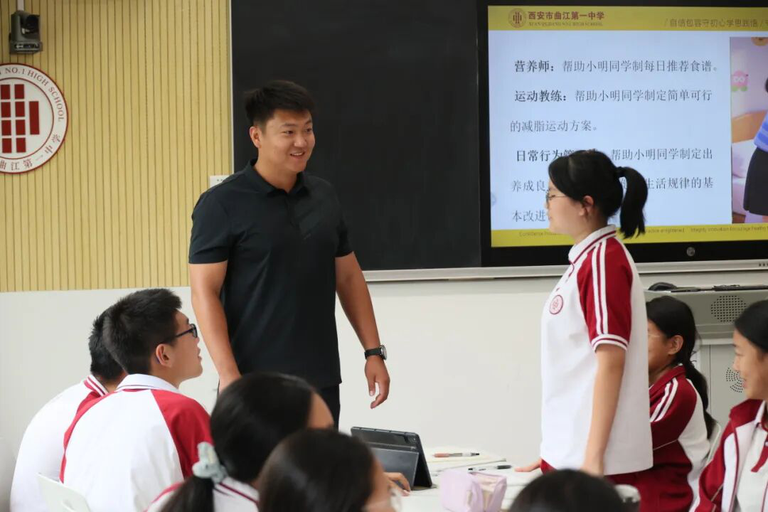 体育教师刘琦运用AI工具生成的视频进行情景导入,引发学生的思考,通过课堂提问的方式,引出“体重对健康的影响”这一主题,帮助学生了解体重超重对健康和运动造成的危害与影响,引导学生对自身的体重情况进行评估与反思。刘老师通过案例展示,赋予学生“营养师” “运动教练” “日常行为管理师”等角色,引导学生借助AI工具,从饮食、运动、日常行为三个方面制定科学的体重管理方案,为学生提供解决体重管理问题的具体方案。整堂课中,刘老师巧妙创设情境,不仅让学生认识到体重管理问题对身体健康的重要性,还帮助学生学习有效掌握解决自身健康问题的方法,提升了学生的实践能力和健康意识。