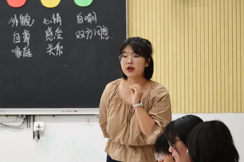 心理教师王瑾结合青春期学生的心理特点,通过情景模拟和AI互动等方式展开教学。课堂以班级小故事作为切入点,借助“情绪温度计”这一工具,引导学生以可视化的方式体验玩笑超过边界后的情绪变化及其对人际关系的影响。课堂上,王老师通过AI扮演同学的方式,让学生体验边界内外的玩笑带给他人的不同感受,引导学生区分“红灯”“黄灯”“绿灯”类型的三类玩笑,帮助学生明确自身的心理边界。在小组讨论环节,学生们从开玩笑者、被开玩笑者及旁观者等多个角度展开探究,总结出“知彼律己”“越界即止”等通用守则。此次课程通过沉浸式体验与共情探究,让学生在互动中理解“真正的幽默始于尊重”的理念,为构建和谐同伴关系提供了“脚手架”。