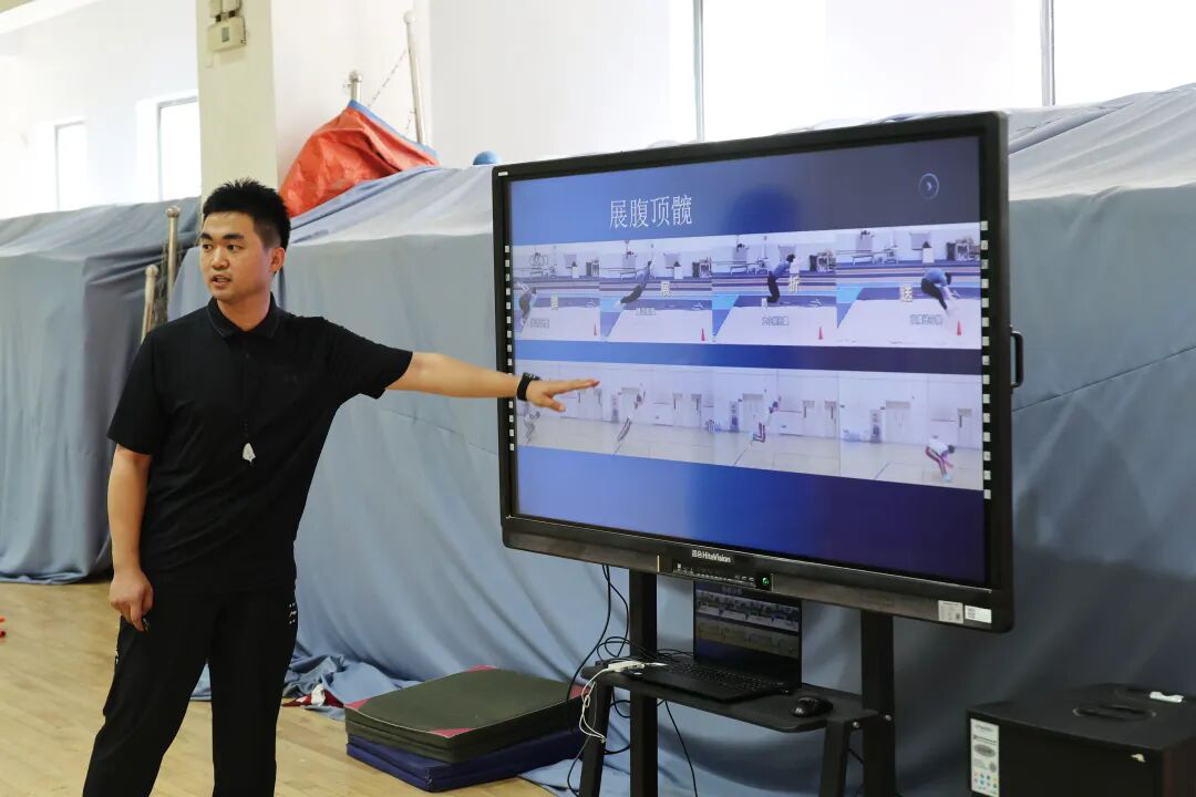 体育教师王嘉恒以初中生在立定跳远技术中的核心问题——蹬地后展腹顶髋与落地前收腹举腿导入,坚持以“学生为主体,教师为主导”的教学理念,根据学生的身心发展特征,通过游戏的形式激发学生的运动兴趣,活跃课堂气氛。在课堂中,王老师设计了针对性的训练方案,层层递进,通过“跪姿摆臂顶髋”“跳组合垫”等趣味练习,帮助学生逐步攻克动作难点。同时,借助AI的视觉分析系统和个性化报告功能,实时捕捉学生的练习动作,直观对比学生课前与课后的数据差异。在“以赛代练”环节,王老师系统展示了学生的成绩提升幅度,其中男生平均进步超5厘米,女生平均进步超3厘米。整堂课不仅锻炼了学生的下肢力量,还促进了学生全身协调能力的发展。