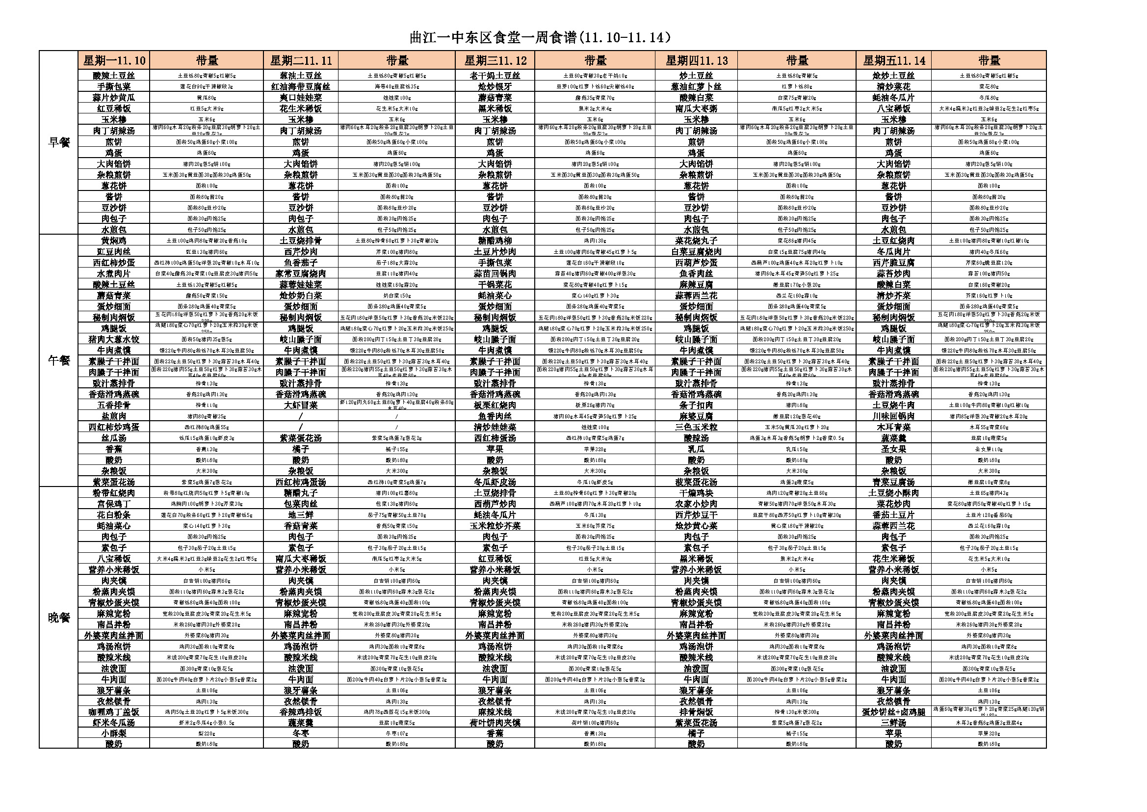 曲江一中食堂一周带量食谱(11.10-11.14)