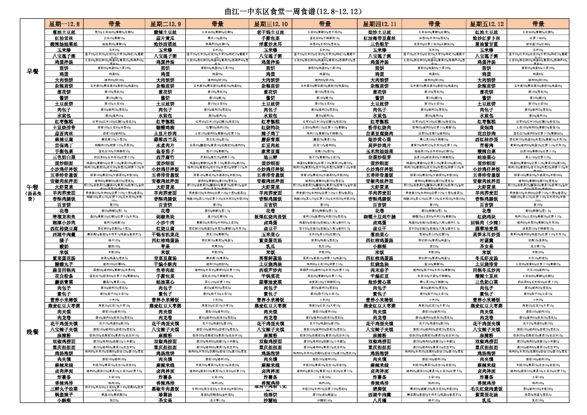 曲江一中食堂一周带量食谱(12.8-12.12)