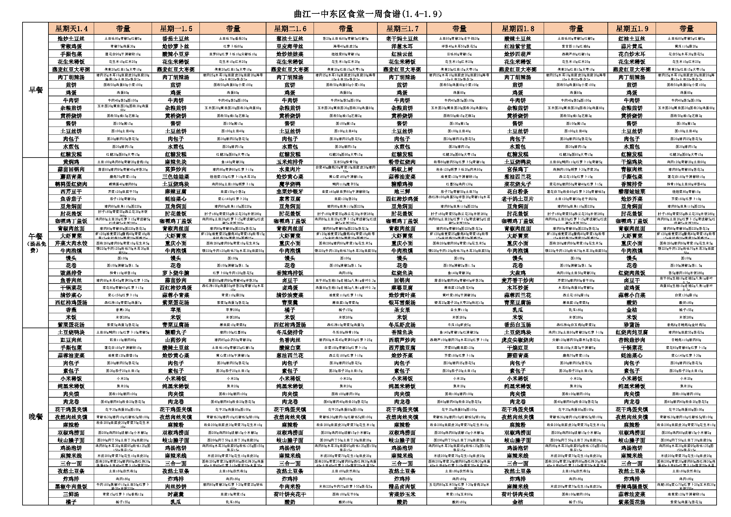 曲江一中食堂一周带量食谱(1.4-1.9)