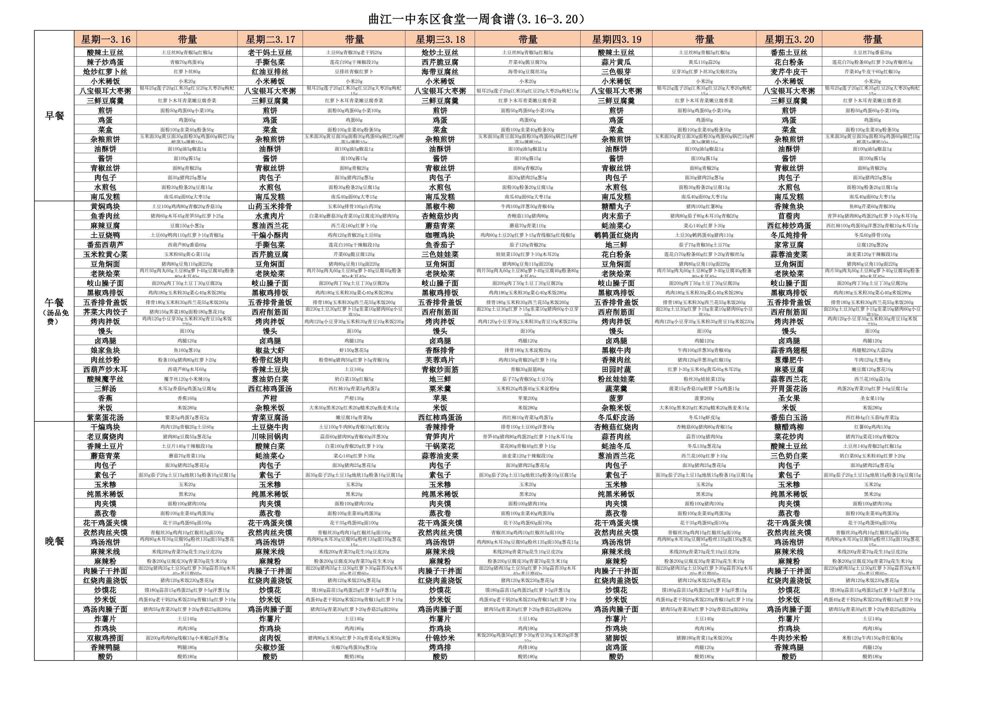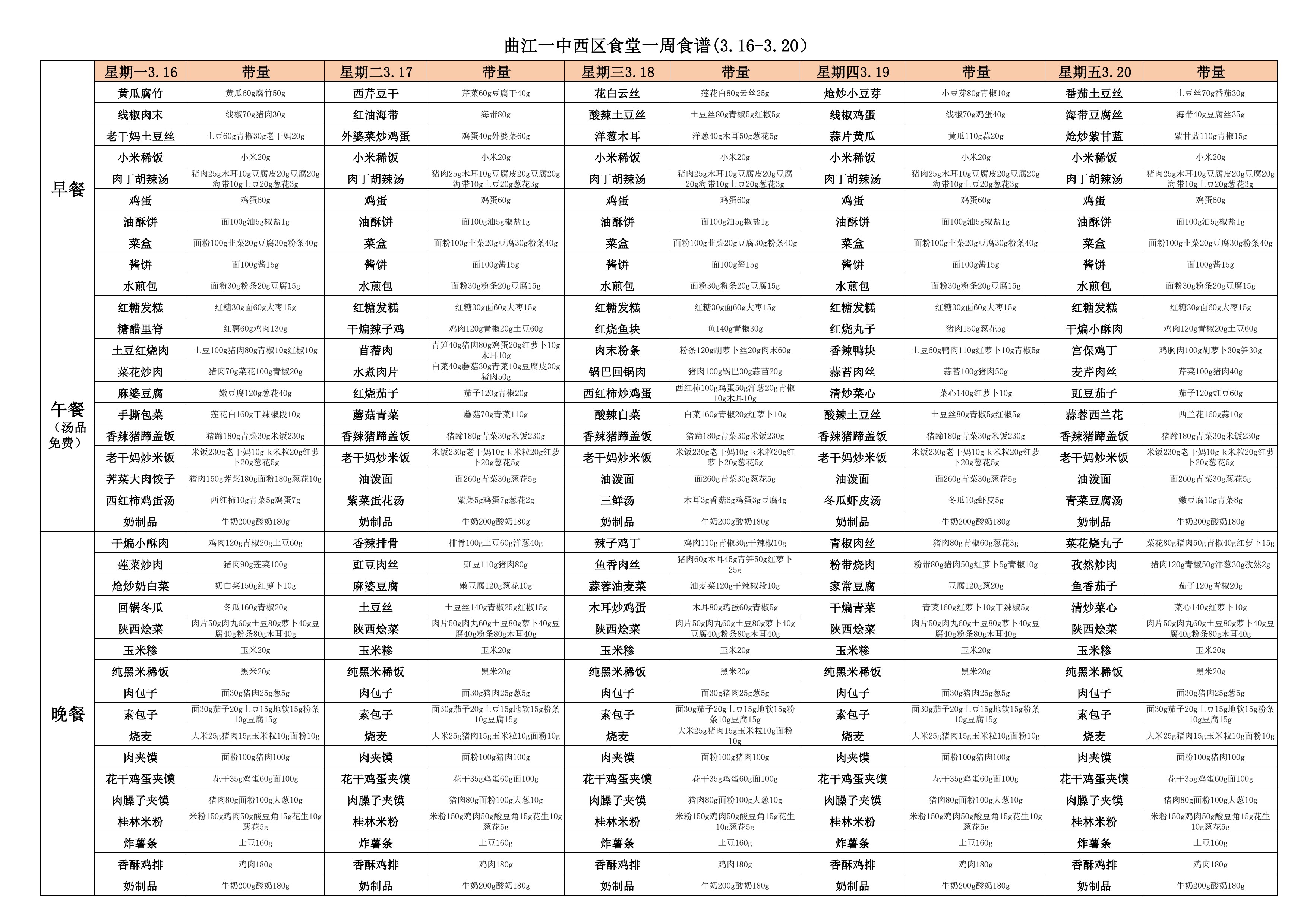 曲江一中食堂一周带量食谱(3.16-3.20)